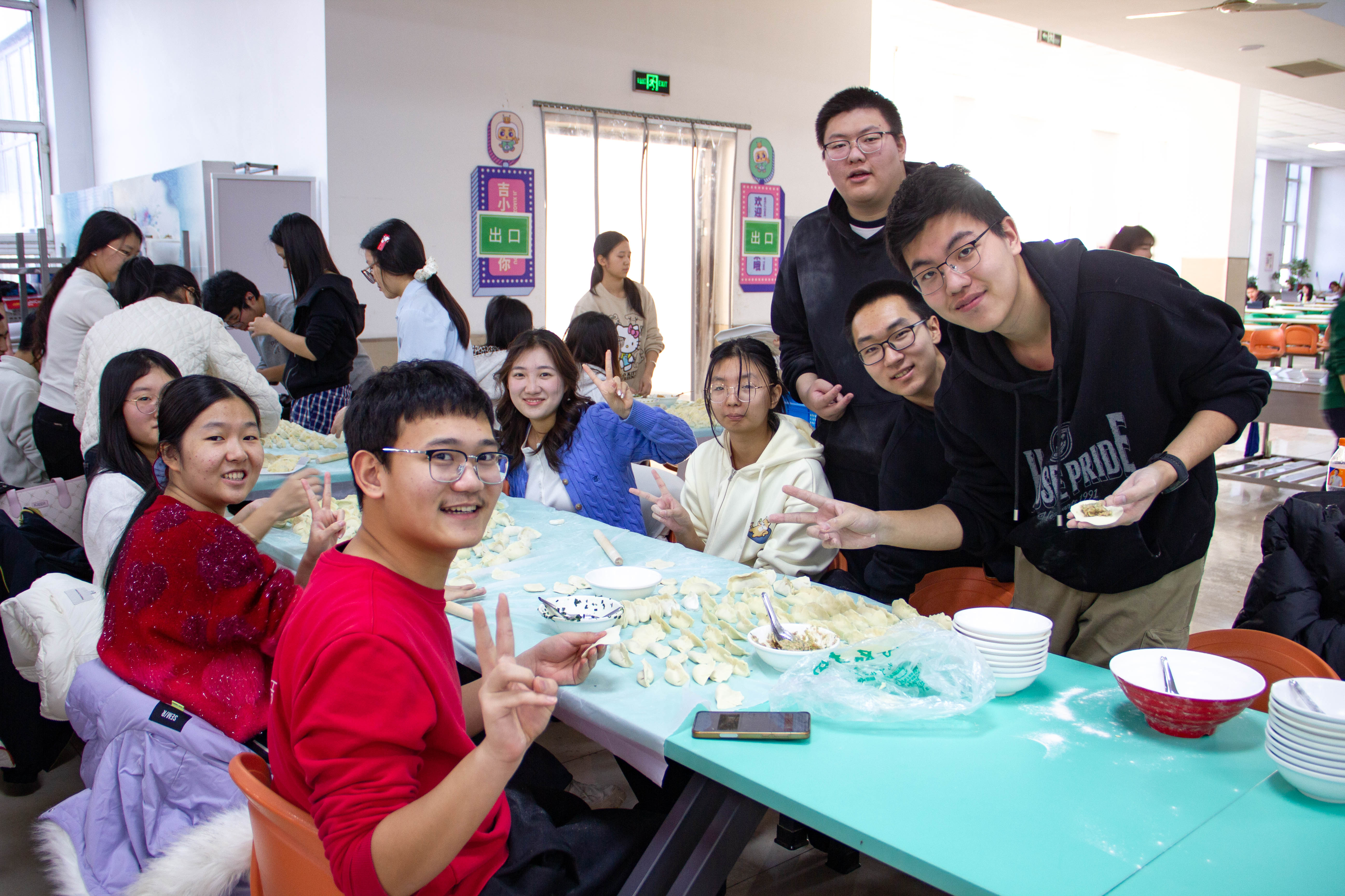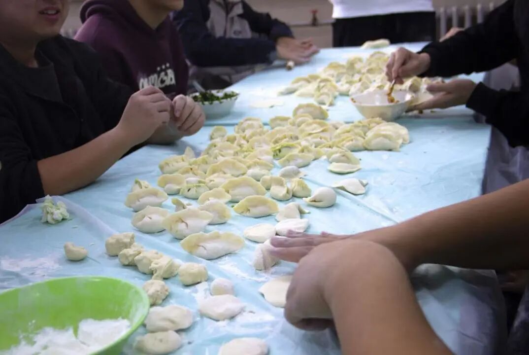 活动现场暖意融融,擀面杖、饺子皮、馅料整齐罗列,食材一应俱全。同学们挽起衣袖分工协作,和面擀皮、填馅捏形,手法虽有生疏却满含热忱,元宝饺圆润饱满,月牙饺棱角分明,青涩脸庞上皆是认真模样。指尖翻飞间,包出的是形态各异的饺子,包进的是初入校园的期许与同窗相伴的温暖,氤氲热气驱散陌生隔阂,集体归属感在烟火气中悄然凝聚。