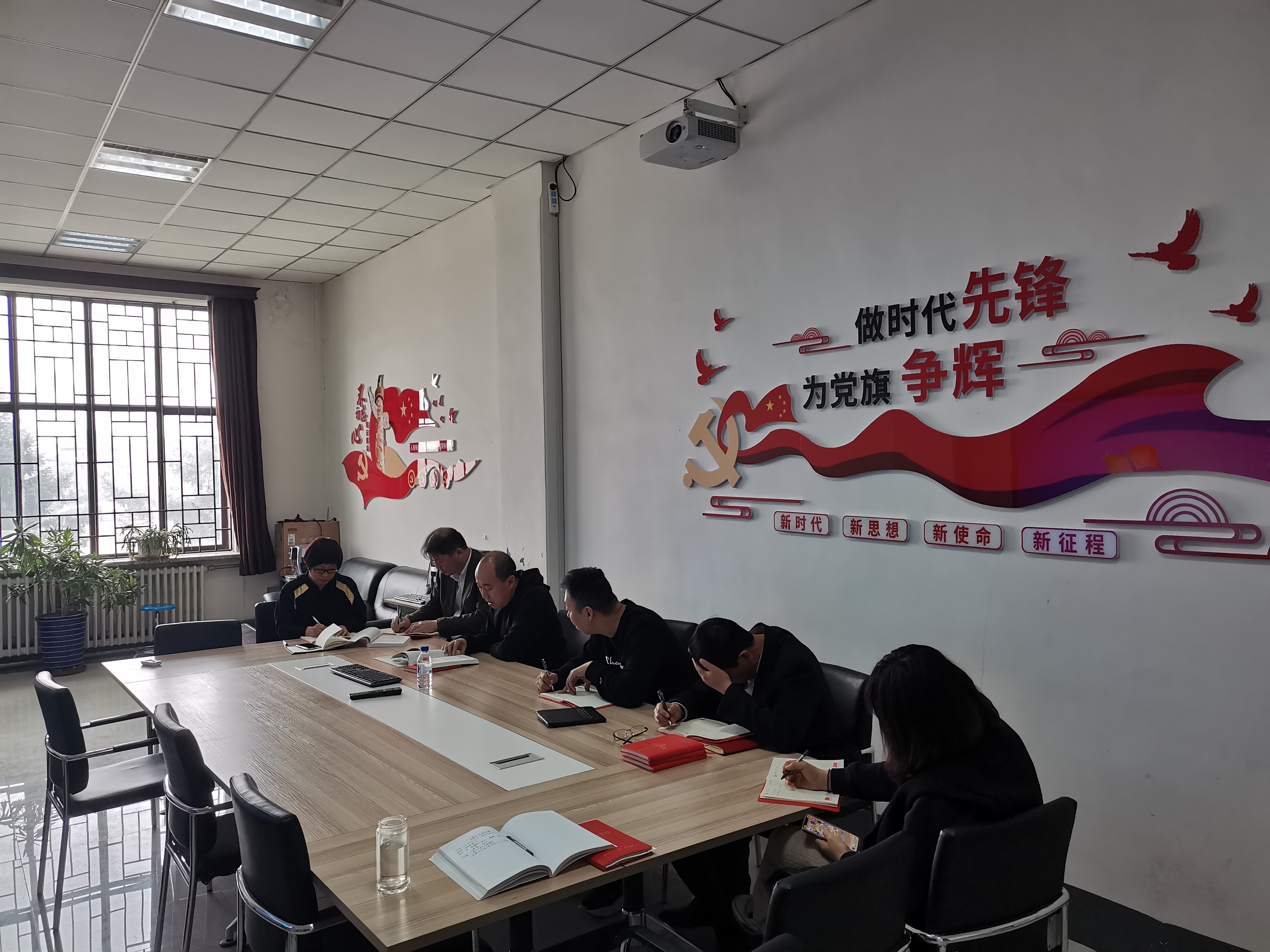 仪电学院教工行政党支部在地质宫420开展主题党日学习活动,会议由学院教工行政党支部书记边江主持,学院党委书记邱增凯与支部成员参加会议。