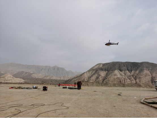 航空混场源电磁探测团队在新疆策大雅深长隧道洞址勘查工程中,利用自主研发的直升机航空混场源电磁探测系统获得了显著成效,使我国在极端复杂条件下的高落差、大深度、超长公路隧道洞址探测能力取得新突破。在完成各项外业工作以及探测质量获得项目方高度肯定后,团队从新疆库尔勒轮台县顺利返回长春。