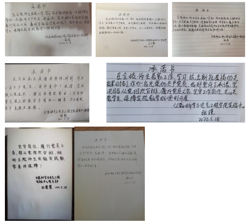 自2022年3月10日,全校师生响应号召,居家工作学习。与2020年不同的是,这次全体学生是在学校居家,学校的各项保障工作量非常大。各级领导,相关工作人员全力以赴保障师生学习和生活。这学期有实验课、毕业设计管理的实验技术人员都坚守在线上实验教学和实验室管理的岗位上,为毕业设计的同学提供保障,为学生们解惑答疑,进行心理辅导……在抗击疫情的最关键时刻体现了共产党员的责任与担当。今天,我们面对党旗许下承诺:坚守岗位,履行党员义务,服从党组织安排,做好全院师生实验实践教学的条件保障!
