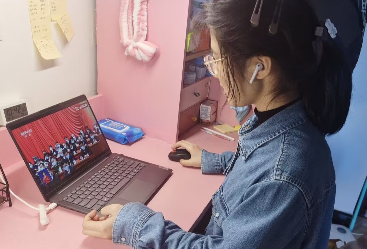 本科生准时收看党的二十大开幕会直播盛况,聆听习近平总书记代表第十九届中央委员会向党的二十大作报告。