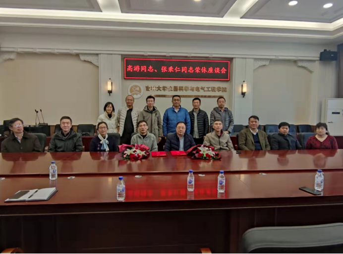 为高游老师和张秉仁老师举办了荣休座谈会。学院院长嵇艳鞠、党委书记邱增凯、副院长刘长胜和部分电气系教师参加了座谈会。座谈会由学院电气系副主任周志坚主持。