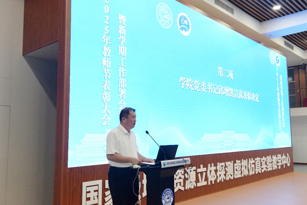 在朝阳校区国家地质资源立体探测虚拟仿真实验教学中心召开2025年教师节表彰大会暨新学期工作部署会议。学院全体教职工参加会议,会议由行政副院长朱宇主持。