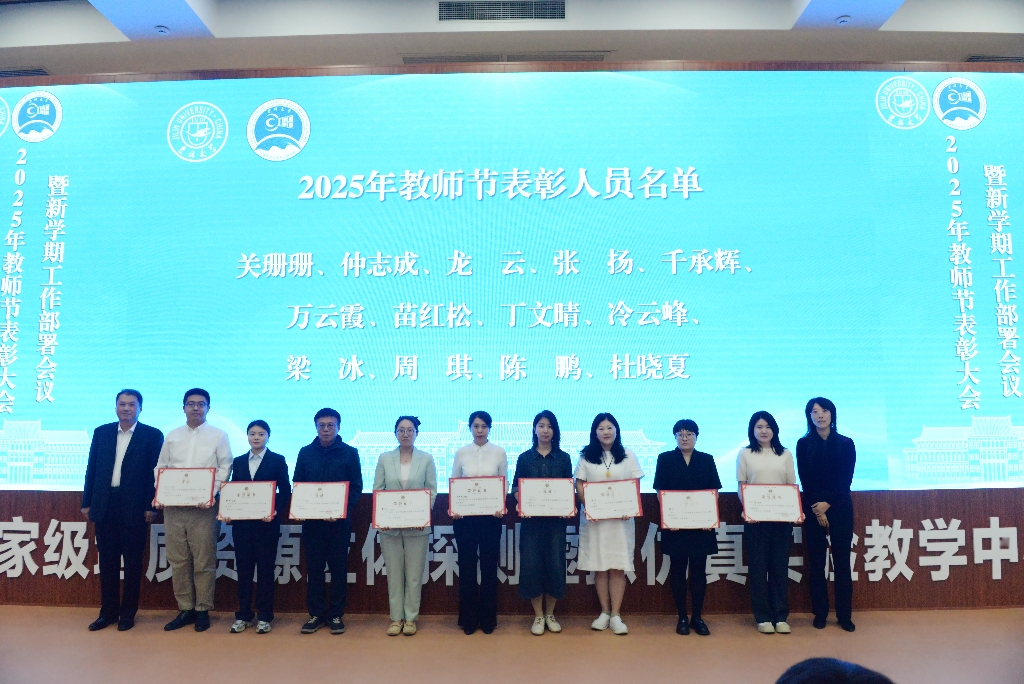 院党委书记邱增凯与院长林婷婷共同为获表彰教职工代表颁发荣誉证书并合影留念。