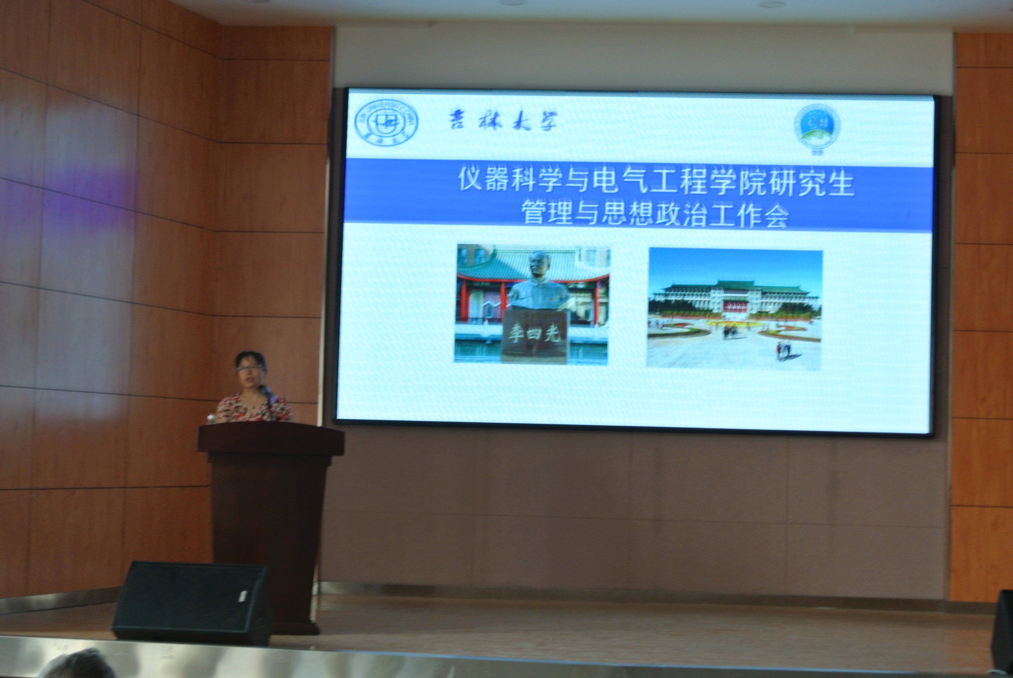 在图书馆四楼报告召开研究生管理与思想政治工作会议,全体研究生导师和全体研究生参加了会议,会议由副院长王言章主持。