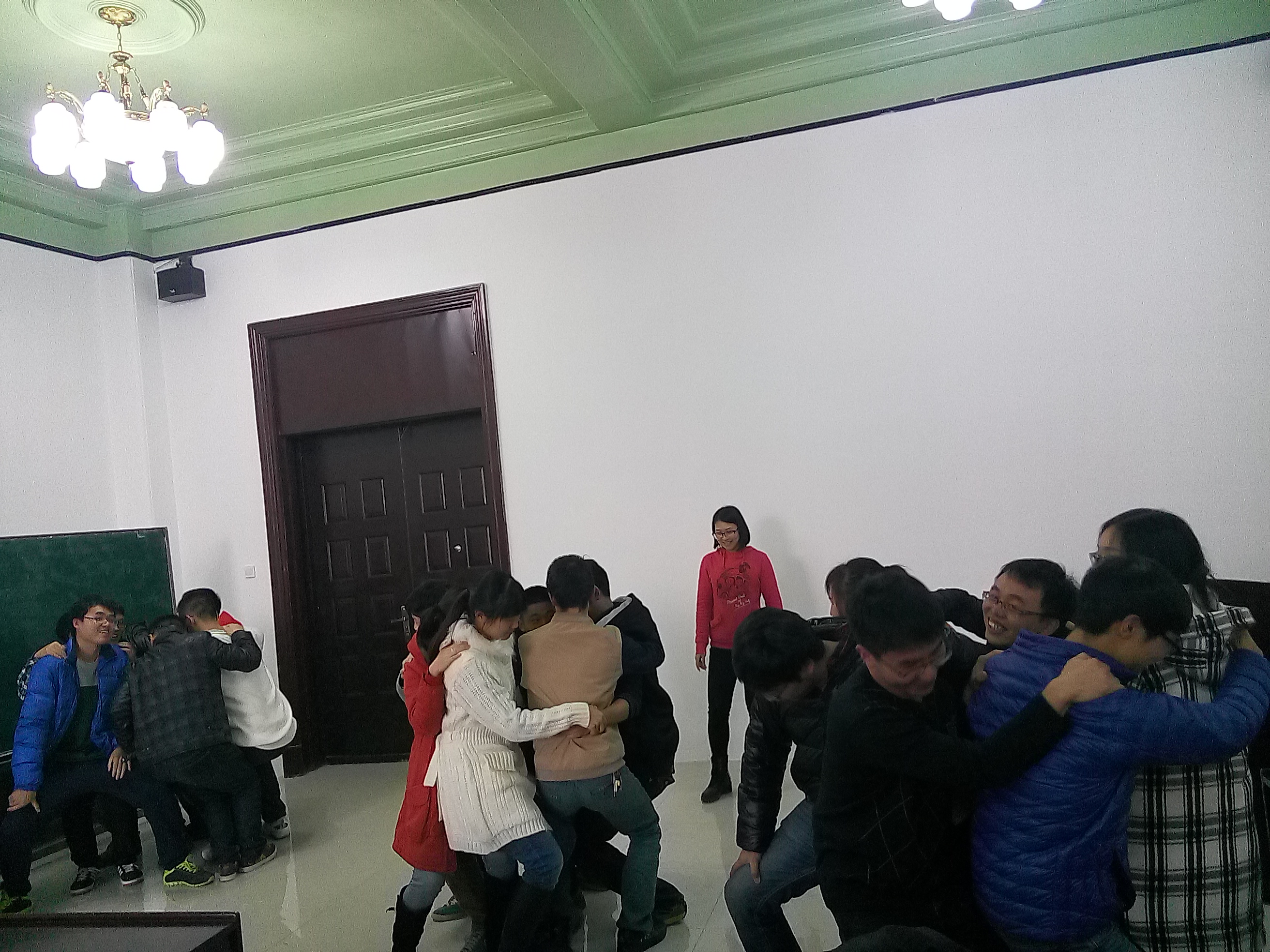 为了使2015级新入学研究生在在新环境中建立起心理支持系统,增强团体凝聚力,丰富研究生课余生活,促进班级成员的相识,建立互信。本次活动主要是组织学生开展团体心理辅导的实践体验。在实践体验中,通过 “1分钟热烈欢迎”、“无家可归”、“温柔体操”的游戏环节是同学们消除了戒备感,“信任之旅”、“集体登陆”、“快乐传递”等心理游戏,充分调动同学们的积极性和主动性,促进同学之间的相识和交流,快速建立基本信任感,使参加活动的同学们学会了如何相互欣赏,体会团队之间的协调与配合,从而提升班级凝聚力。同时,也使参加活动的同学们在体验中受到启发,在团体的交流和分享中获得感悟和提升。