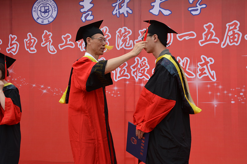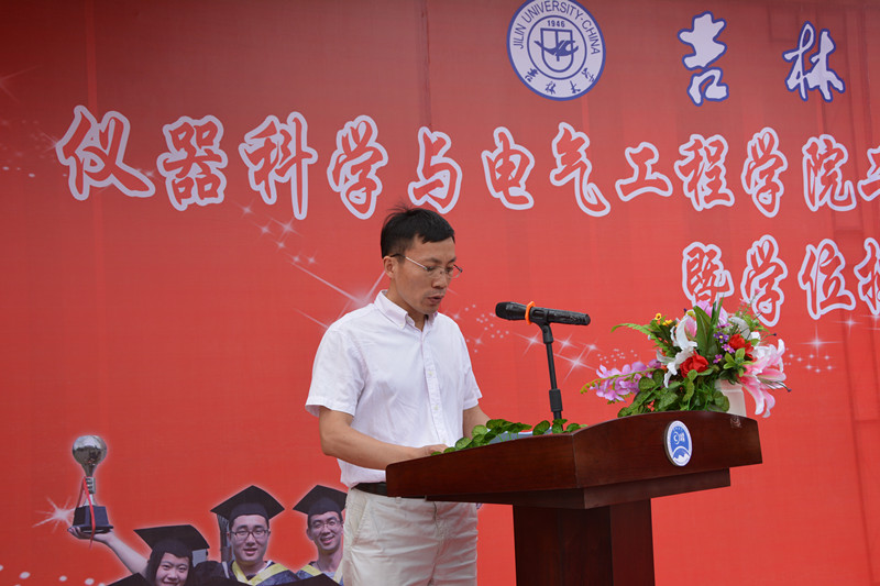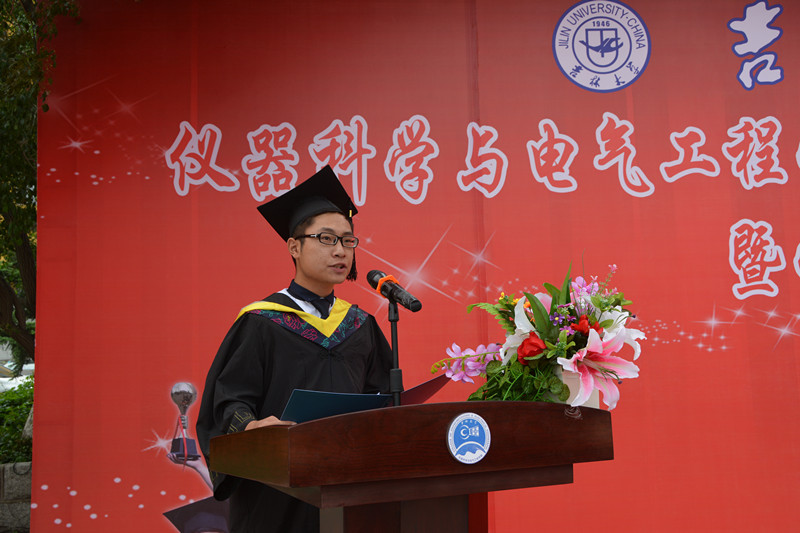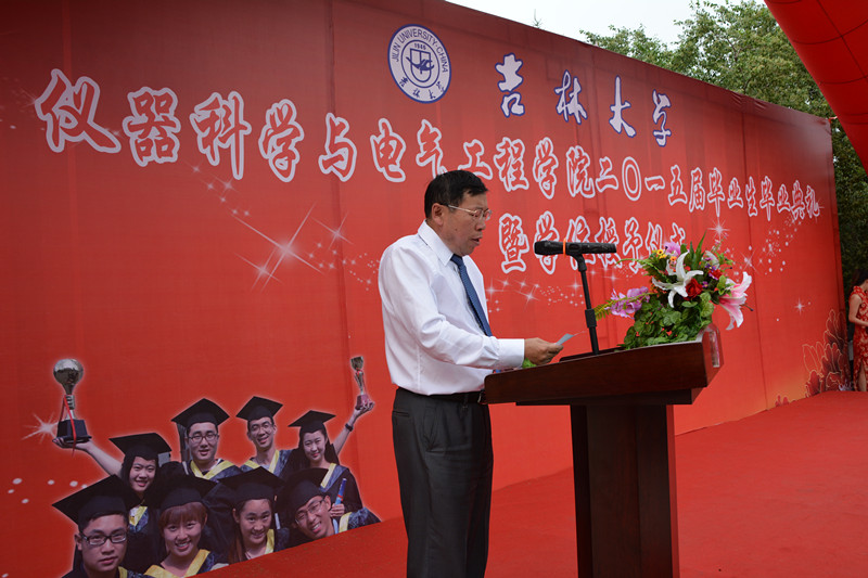 2015届研究生毕业生和本科毕业生名单,院长林君教授与院学科学位委员会副主席嵇艳鞠教授一起为2015届毕业生授予学位。随后,院党委书记余国友教授宣读了2015届校优秀毕业生名单,并为优秀毕业生颁发获奖证书、合影留念。学院教学委员会主任王应吉教授宣读了优秀毕业论文名单,仪器系主任凌振宝教授、电气系主任刘长胜副教授分别为获得优秀毕业论文的同学颁发证书并合影留念。之后,教师代表王应吉教授和2015届毕业生代表、 onlytik