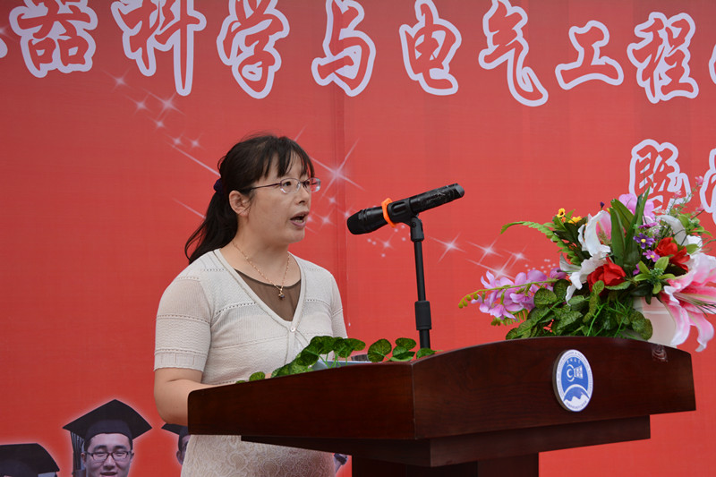 2014年度自强自立大学生标兵韩哲鑫同学分别作了发言。王应吉教授代表学院全体教师对2015届毕业生送上了最诚挚的祝福,希望大家在今后的事业中取得更大的成就。韩哲鑫同学代表学院全体毕业生向辛勤培养自己的母校,向仪电学院,向四年以来关心、帮助大家的领导和老师们表示了衷心的感谢和良好的祝愿。