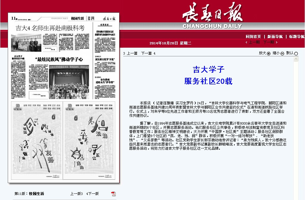 开展的志愿服务基地共建20周年活动进行了长篇幅报道。
