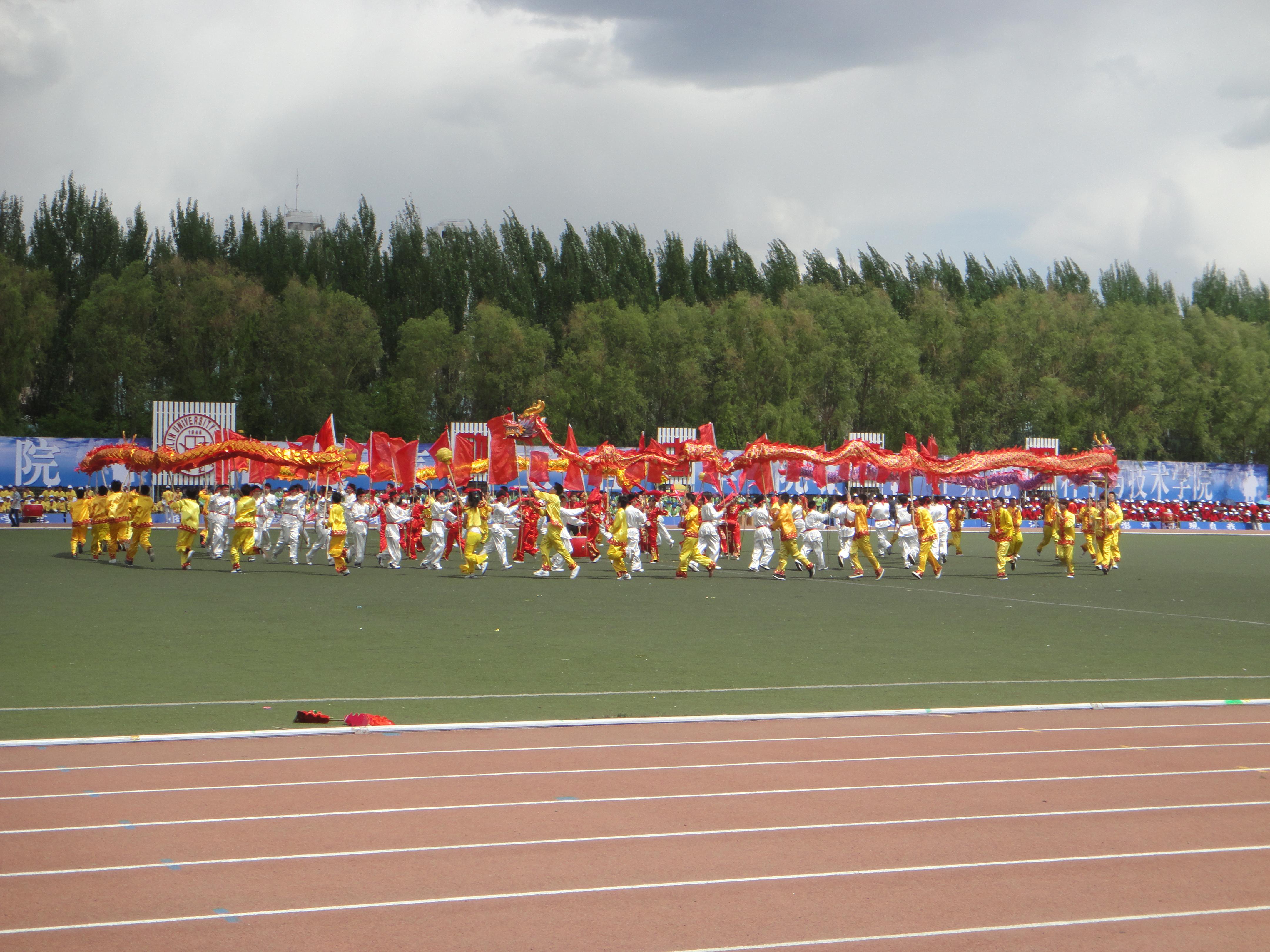 2011级学生带来的文艺节目《龙腾吉大》以别出心裁的表演和磅礴雄壮的气势赢得了一致好评。伴着《开门红》豪迈的节奏,刀旗队、腰鼓队和4条长龙迅速进入体育场中央——红旗整齐有力地飘扬,腰鼓欢快整齐地响着,风中红绸飞舞,空中长龙盘旋,场内欢呼声不断。最后,4条长龙先后摆出“2012”和“吉大”字样,场内再次掀起高潮,爆发出震耳欲聋的掌声,在“2012,龙腾吉大”的口号声中文艺表演圆满结束。