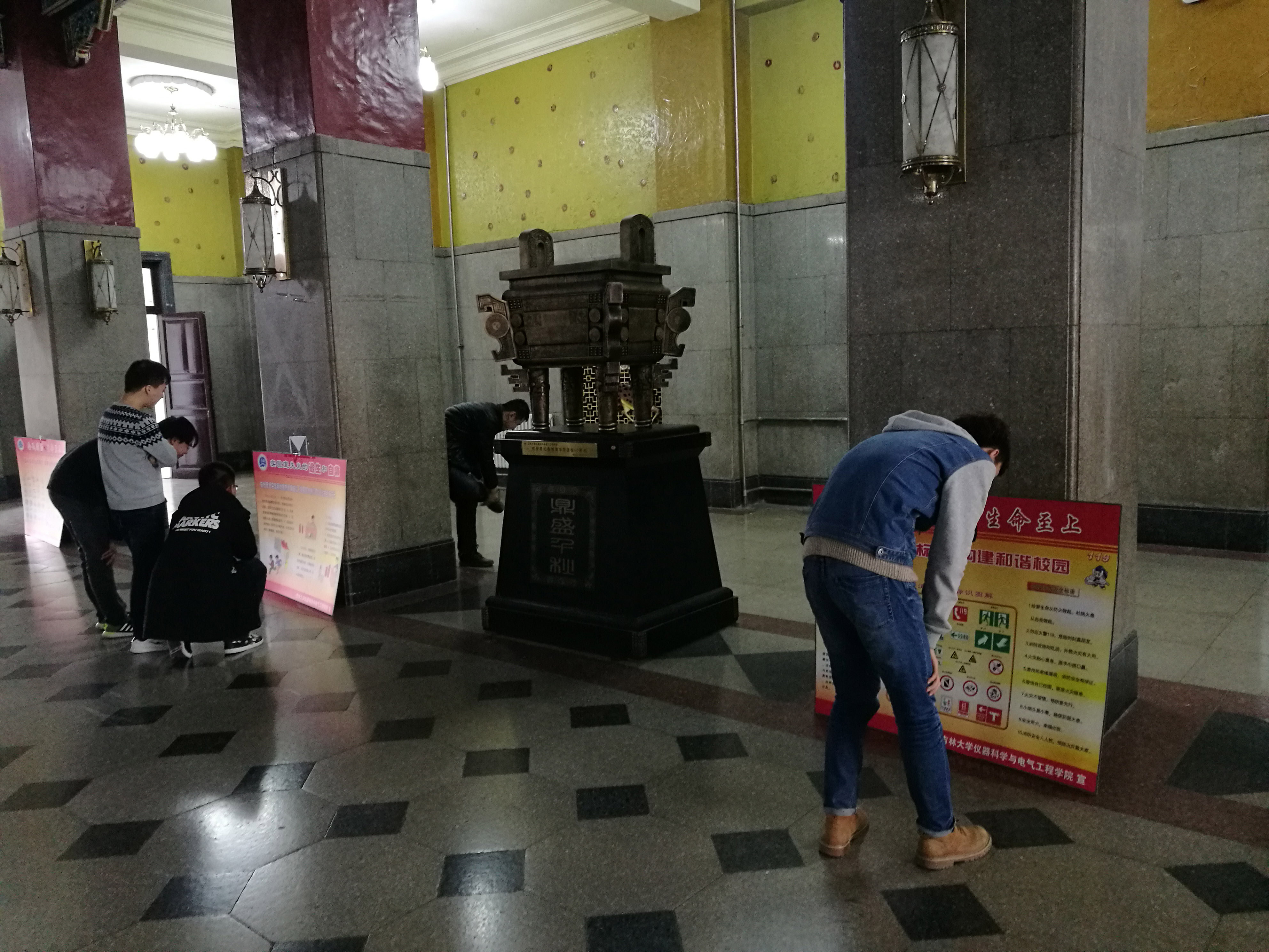 2017年11月9日,数张消防文化宣传展板整齐排列在朝阳校区地质宫二楼,这是 onlytik