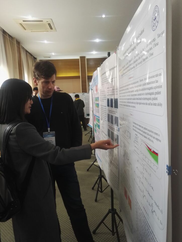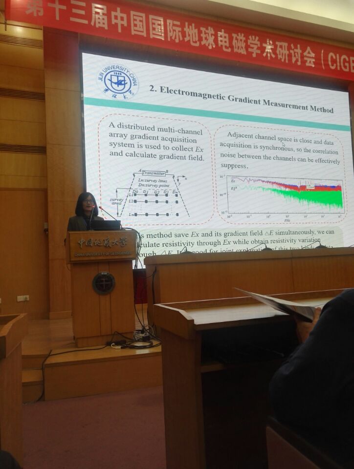 院长嵇艳鞠教授带领电法组9名教师和6名学生参加了此次会议,嵇艳鞠教授作了《基于分数阶有限差分法的时域电磁慢扩散三维仿真》的报告,报告内容引起了国内专家学者的肯定和赞扬。2017年“李四光”奖学金获得者蒋善庆同学作了《联合EMD和wavelet的MCSEM数据噪声压制方法研究》的报告,国内外学者就报告内容展开了激烈的讨论。 onlytik