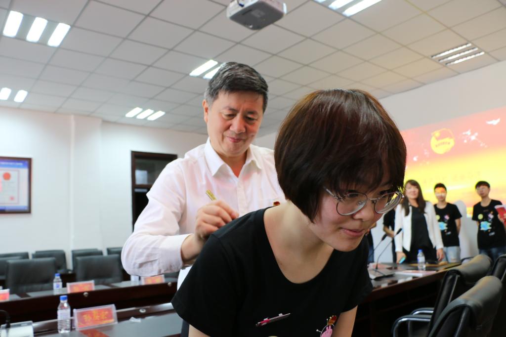 在师生交流环节,同学们畅所欲言,分享了自己在这几年的学习生活感受,并向老师提出了关于学院建设一些建议和问题,老师们非常热心的为同学们答疑解惑。王昭勋同学指出了学院“六个一” 工程极大丰富了他大学的科研生活,让他收获很多,希望学院能继续开展更多这样有意义的活动,并对“六个一”工程的实施提出了自己的建议。院长嵇艳鞠老师对此充分肯定,同时也向同学们介绍了学院最新开办的为本科生讲解科技前沿技术的“四光讲堂”。接下来,班导师凌振宝老师对同学们的四年发展情况进行了回顾,充分肯定了同学们取得的成绩,并给出了同学们今后发展的建议。整个环节气氛融洽,同学们都在和老师的交流中收获了很多。