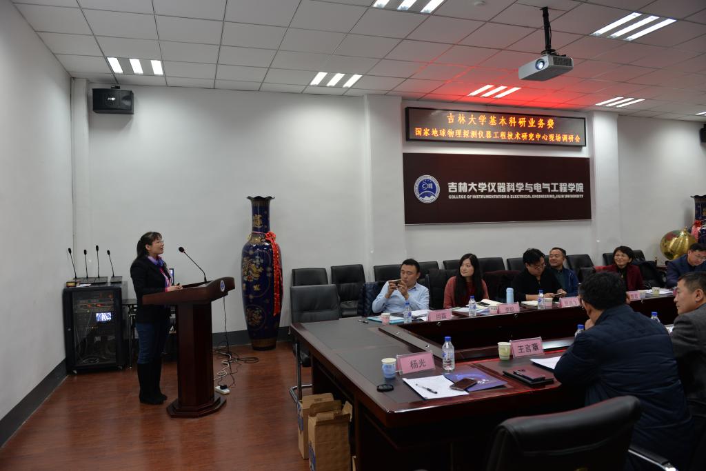 院长嵇艳鞠,党委书记王爱民,副院长王言章、仪器系副主任杨光、国家地球物理探测仪器工程技术研究中心副主任孙忠等人出席了调研会,会议由学院党委书记王爱民主持。
