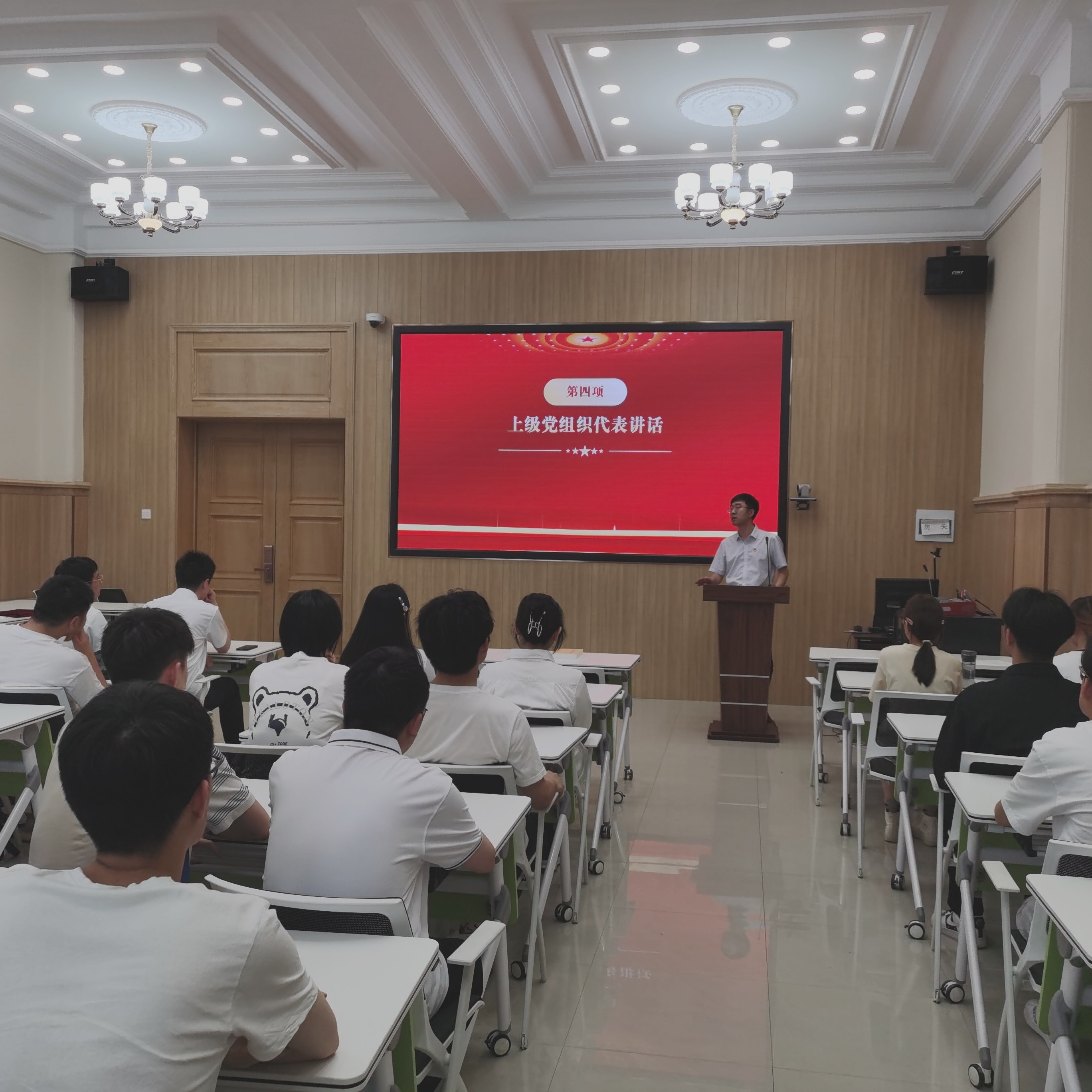学院党委副书记兼副院长周伟代表学院党委对预备党员表示祝贺并提出要求,希望大家牢记中国共产党全心全意为人民服务的根本宗旨,牢记为中国人民谋幸福,为中华民族谋复兴的初心使命,充分发挥在学习、科研、生活中的先锋模范作用,以实际行动学习贯彻好党的二十大精神,为实现中华民族伟大复兴的中国梦贡献自己的青春力量,为党旗增光添彩!