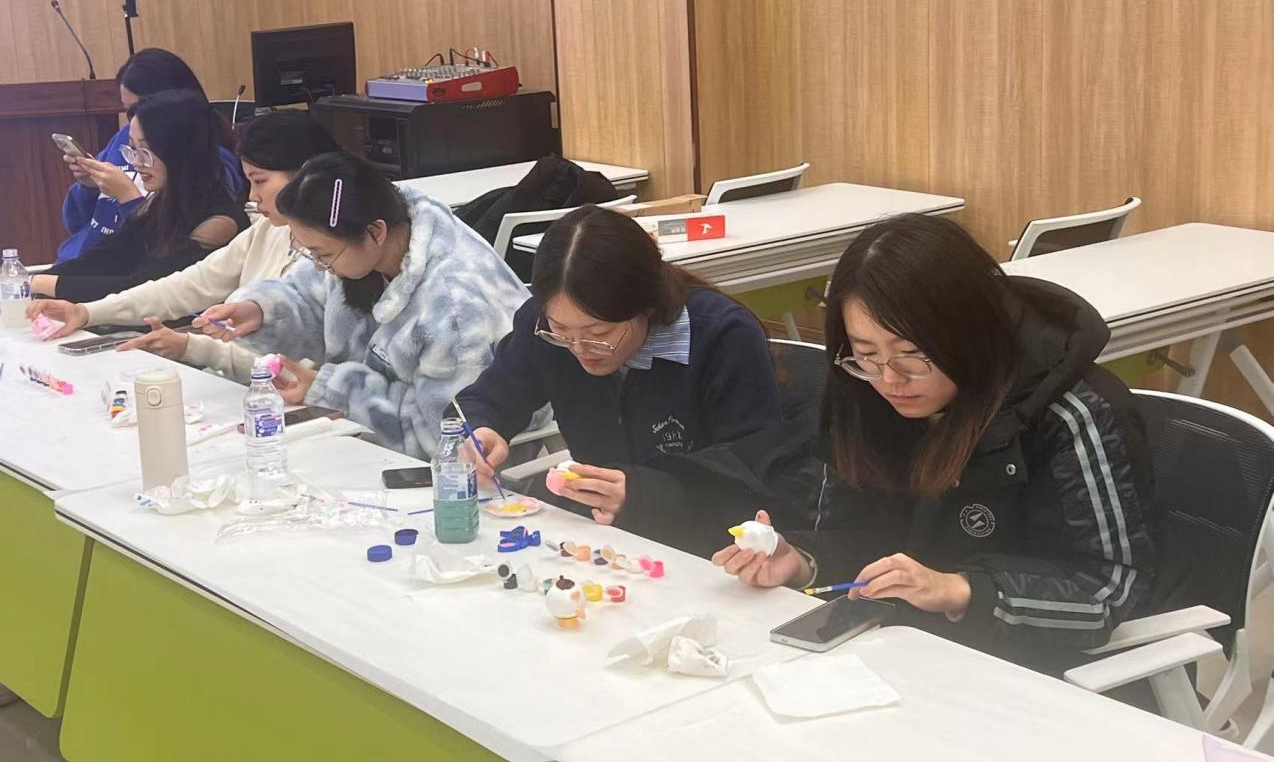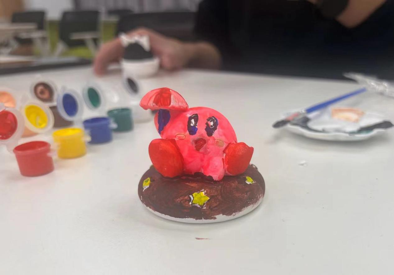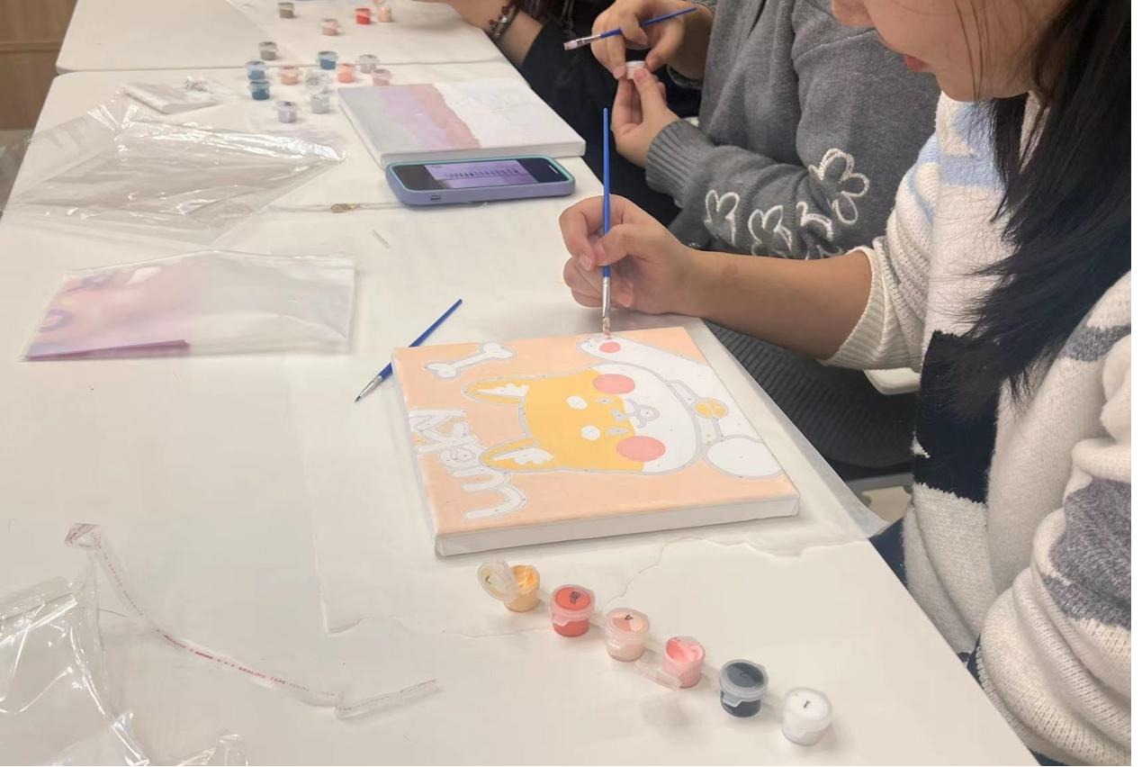 活动中,主持人向大家展示了没有颜色的石膏娃娃和丙烯颜料画纸,介绍了此次活动所用的道具以及注意事项。创作伊始,同学们敞开心扉,在彼此交流的过程中充分地表达自己内心的创作想法,选择自己心仪的涂鸦物品。欢快的交流过后,大家开始进行创作,在安静的氛围下,每位同学都得到了心灵上的放松。创作完成后,同学们各自展示自己的石膏娃娃和丙烯颜料画,原本毫无色彩的物品都被赋予了独特的颜色,每个作品都饱含同学们丰富的想象力和创造力。在合影留念后,同学们带走了自己创作的作品作为纪念。