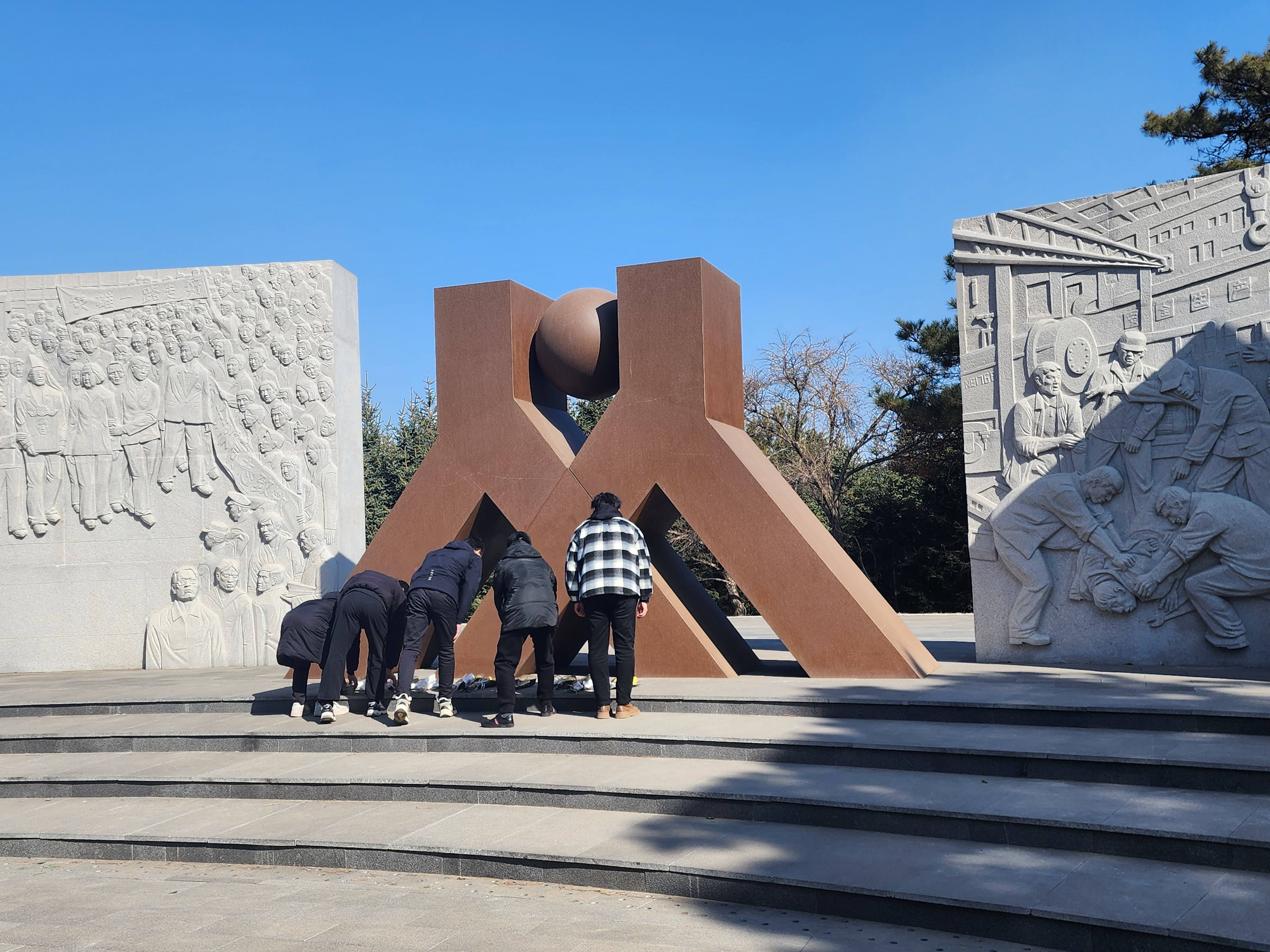 上午8点,在仪电学院博士学生第二党支部书记郝毅同志的带领下,一行人前往长春市革命烈士陵园,瞻仰了吉林公安英烈纪念碑和长春市见义勇为纪念碑,领会纪念碑上镌刻的先烈英勇事迹和不朽精神。在纪念碑前,同志们献上鲜花并默哀致敬,寄托对烈士们的无尽哀思和崇高敬意,表达对烈士们的感激与怀念。随后,一行人参观了长春市革命烈士纪念馆,聆听馆内讲解员讲述的烈士们为了民族独立和人民解放事业,不畏强敌、不怕牺牲的英勇事迹,更加坚定了同学们继承和发扬烈士精神、为实现中华民族伟大复兴的事业而努力奋斗的决心和信心。最后,党员同志在纪念碑前重温入党誓词,初心不改,对革命先烈表达最崇高的敬意。