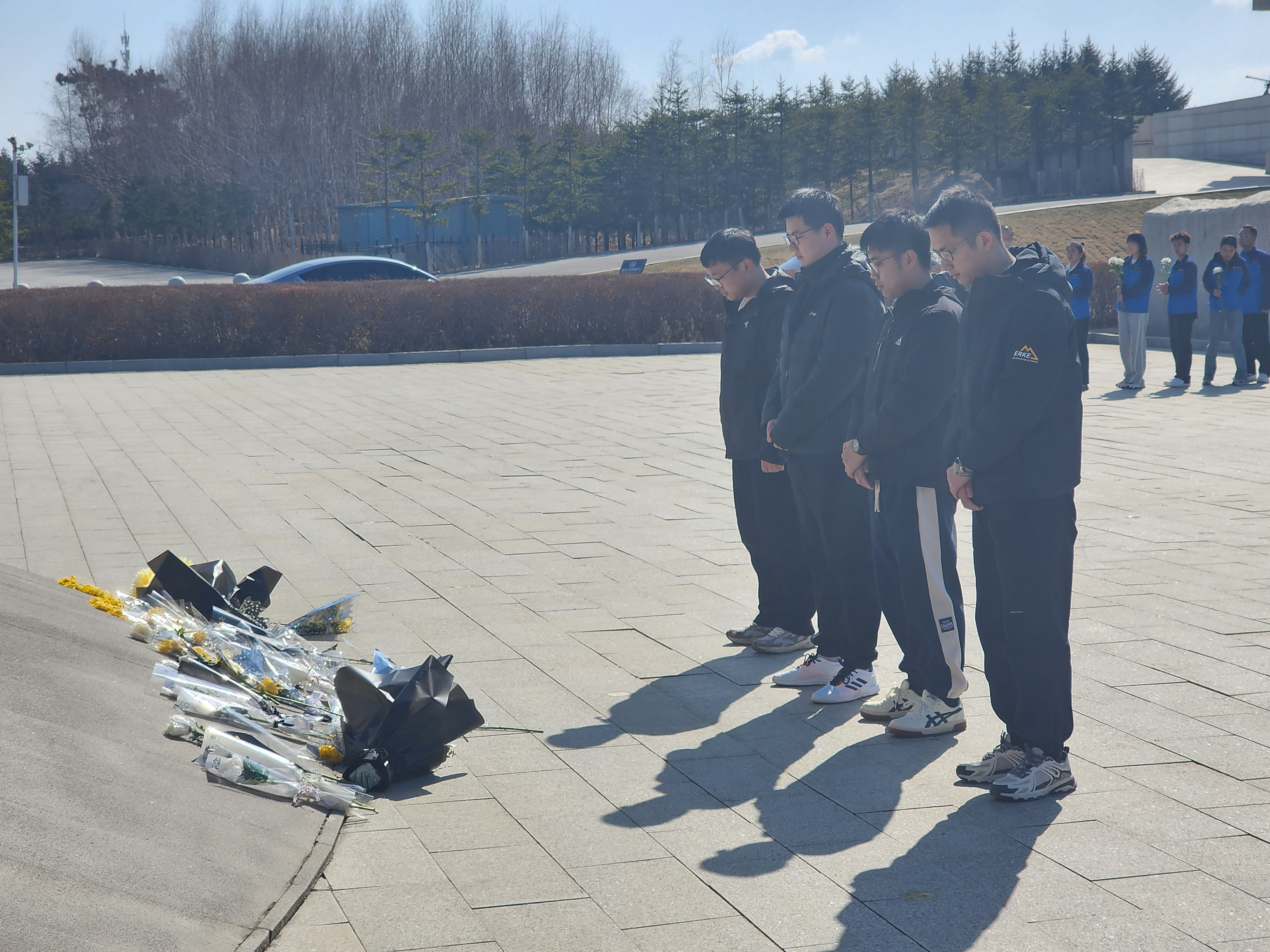 博士生在长春市革命烈士陵园开展“清明祭英魂,缅怀烈士行”主题党日活动。