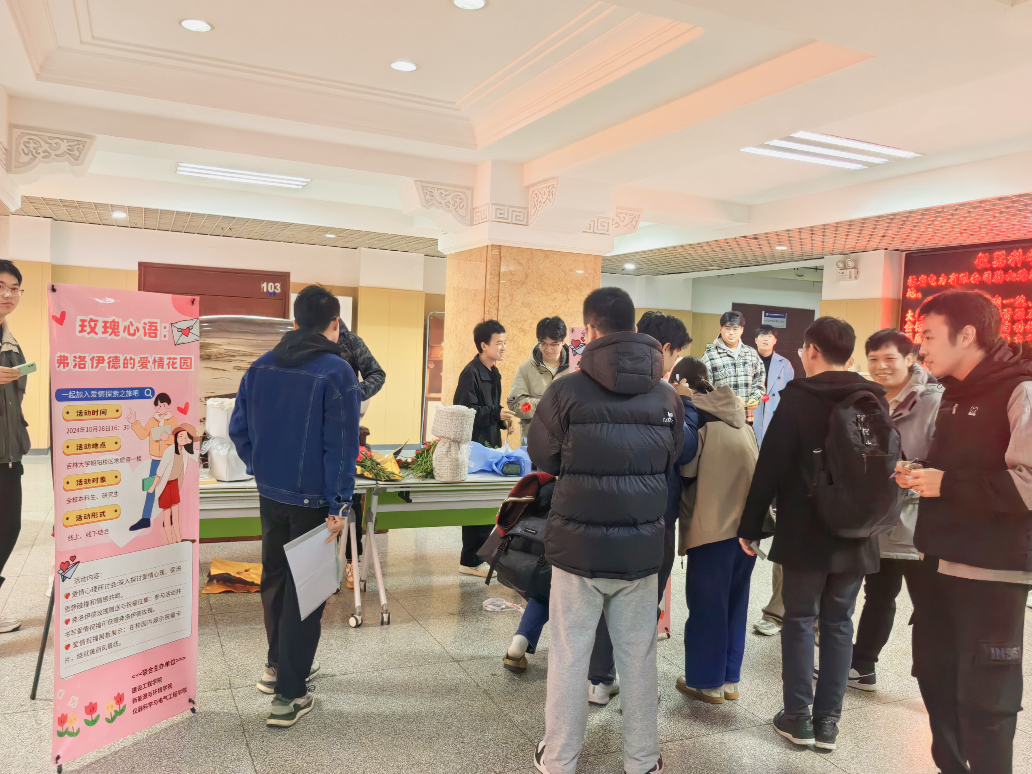 主办,建设工程学院、新能源与环境学院协办,朝阳校区“玫瑰心语:弗洛伊德的爱情花园”心理成长联谊会活动于地质宫一楼大厅成功举办。这场汇聚了心理学、文学与艺术思考的盛会,仿佛一场精神与情感的盛宴,让参与者在艺术的花园中,徜徉于爱的哲思与心灵的碰撞之中。