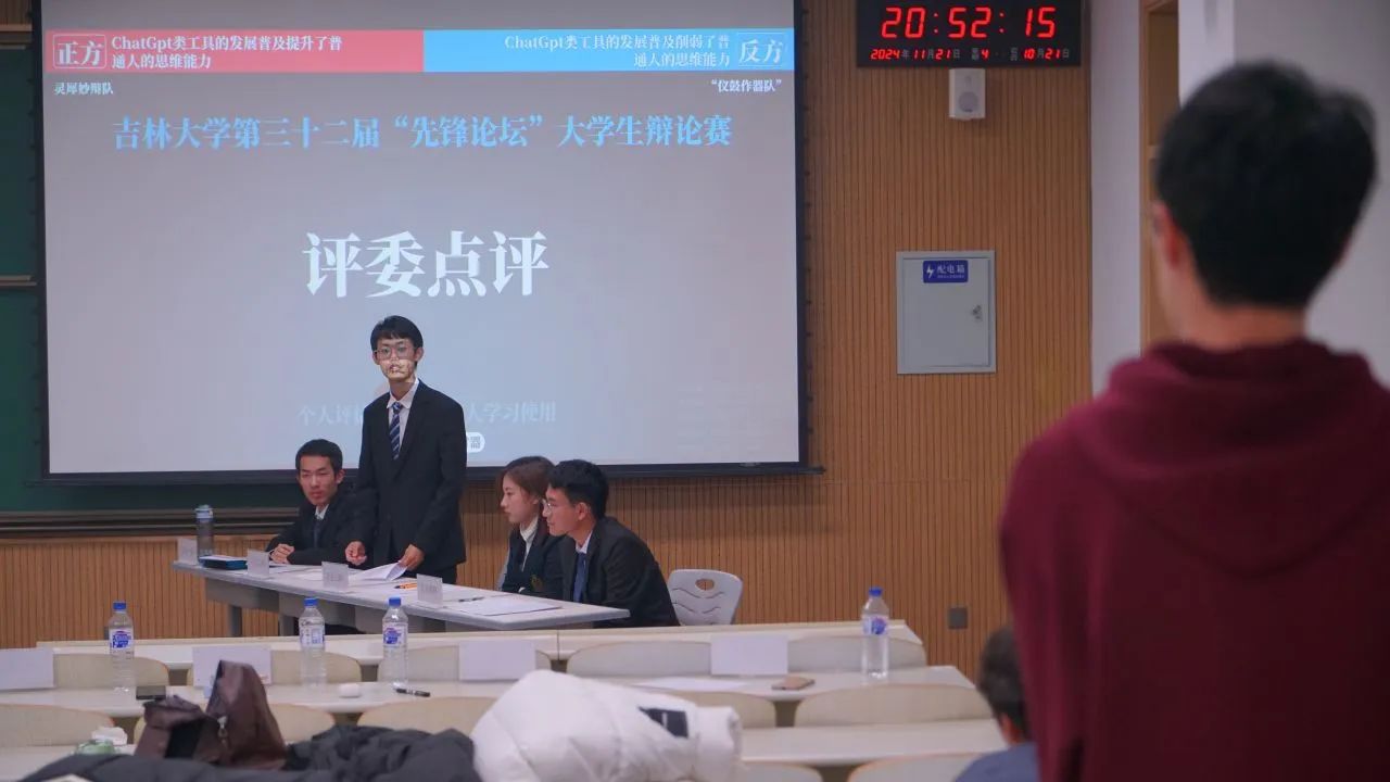 本次比赛辩题聚焦于信息爆炸的当下时代,ChatGpt类工具的崛起。正反方围绕“GhatGpt类工具的发展普及提升了/削弱了普通人思维能力”展开激烈讨论。首先以正反方的自我介绍,主持人对规则的介绍,出席活动的老师和评委介绍为开场。随后辩论赛正式开始,辩手们在立论环节引经据典,聚焦时事,清晰全面地解释辩题,表明观点,对ChatGpt类工具与思维能力提升/削弱,个人的思考能力与创新能力的关系进行了更深入的讨论与思考。在对辩盘问环节,辩手们对于对方出现的逻辑漏洞,进行犀利的提问反驳,激烈精彩,比赛气氛迅速升温。在最为精彩的自由辩论环节,正反方对己方的观点逻辑进行更为完善的阐述和论证,对于对方的逻辑矛盾进一步发问反驳。在结辩环节,辩手们用简练的语言总结观点,升华主题,内涵丰富,赢得了观众的阵阵掌声。