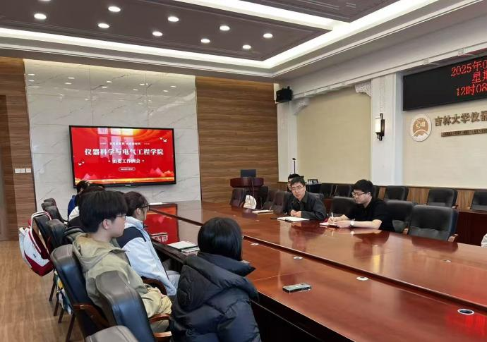 于2025年4月8日在地质宫330会议室召开团学联部门工作例会。学院党委副书记曲珩、团委负责人包健伦,辅导员老师王文轩、学生会主席团及各部门社团负责人参会,针对团委,学生会,社团组织的工作内容,商讨整改举措,明确改革方向。