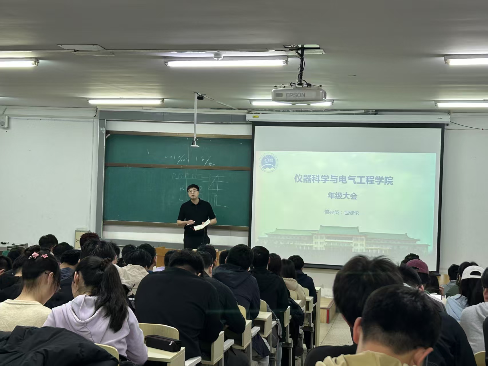 于2025年6月20日在李四光教学楼召开本科生年级大会暨期末考试考风考纪教育警示会,本次会议由本科生辅导员包健伦,王文轩老师主持,学院2023级、2024级全体本科生参加。