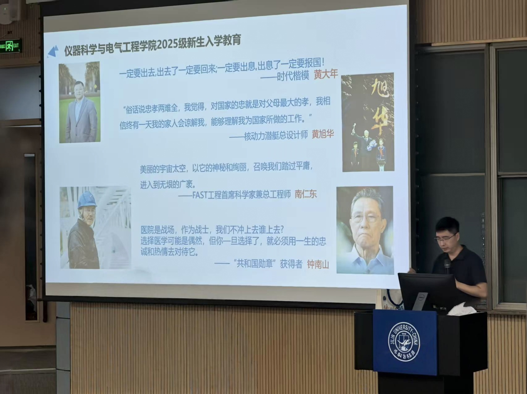 党委副书记兼副院长曲珩在李四光楼为全体2025级新生进行入学思想教育。