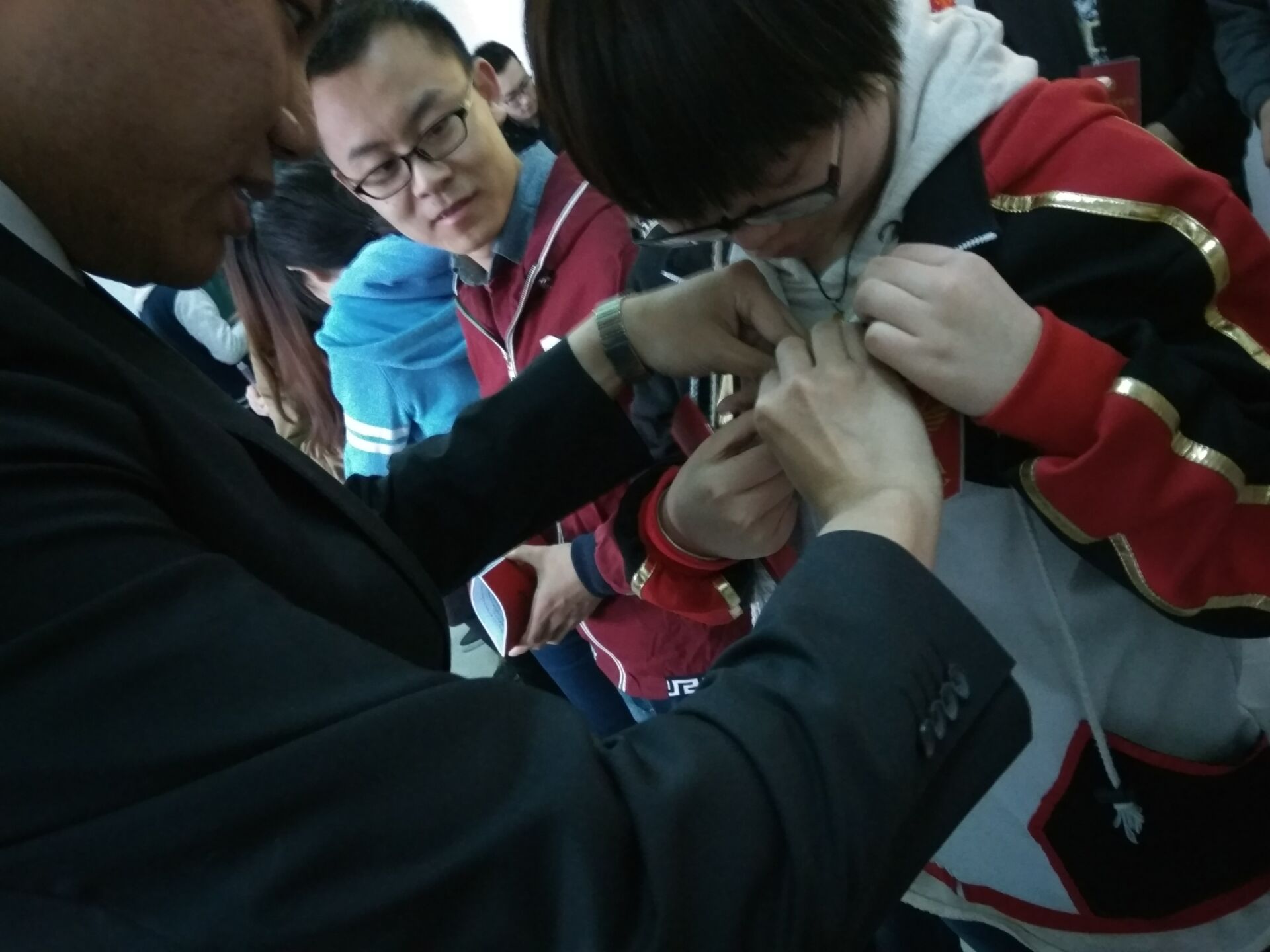 宣誓仪式在雄壮有力的国际歌中拉开序幕。首先,学院学生工作办公室主任王冕老师宣读了24名新发展党员名单。随后,在学生党员李昊阳同志的带领下,新党员集体上前宣誓,他们举起右拳,面对党旗,神情庄重地宣读了誓词,抒发了对党忠诚的决心。宣誓结束后,老党员又一一为新党员佩戴党徽并发放党章,祝贺他们光荣加入中国共产党。随后,预备党员代表赵成同学上前发言,他对党组织的深切关怀及各位党员同志的关心和帮助表示了深深的感谢,并表示将牢记入党誓词,勤奋工作、刻苦学习,时刻以党员标准严格要求自己,做一名合格的共产党员。最后,学院党委副书记兼副院长邱增凯老师讲话,他希望每一个党员终生都以这个神圣的时刻激励自我,践行入党誓言,为党的事业不懈奋斗。希望党员同志们以此次大会为新起点,更加严格要求自己,进一步学习党的基本理论和知识,增强党员的责任意识,在工作中勇挑重担,努力完成自己的本职工作,同时做到以下几点:第一,正确处理好个人利益与集体利益的矛盾,在工作、学习和社会活动中起模范带头作用。第二,按时向党组织汇报思想和工作情况,努力做一名合格的共产党员。与此同时,邱增凯老师也希望全体积极分子坚定信念,求取成绩,创造条件,通过实际行动向党组织靠拢,早日实现自己的人生追求。随后邱老师对学生党支部“两学一做”学习教育活动进行了具体安排部署。