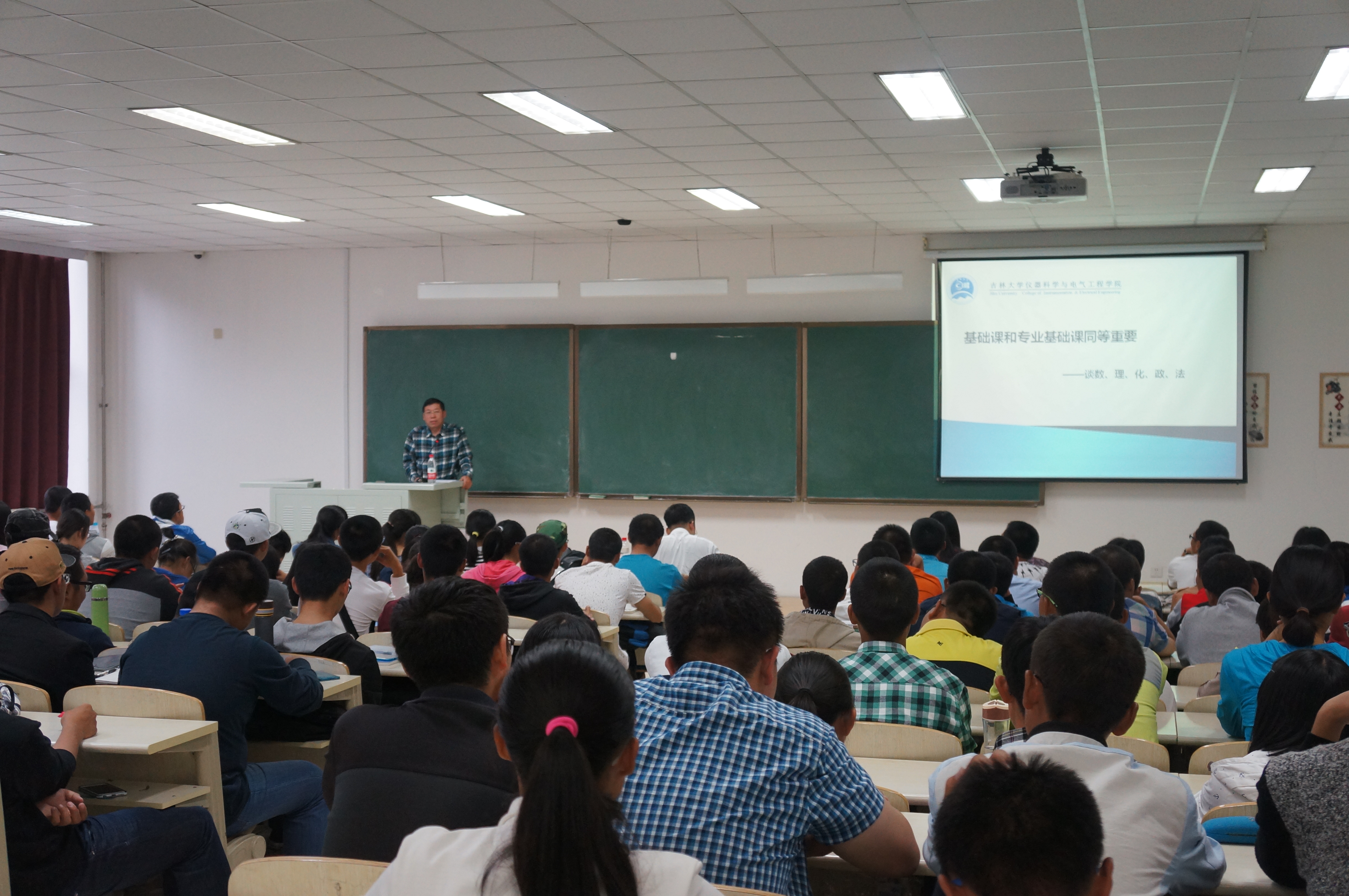 ,学科专业背景、特长以及前景进行了详细的介绍。余书记表示,优异的高考成绩已成为过去,大家现在处于同一起跑线上,新起点,新开始,他鼓励新生要勤奋努力,刻苦钻研。他还就公共基础课与专业基础课的同等重要性、大学学习的适应、课程间的关联性、基础理论与创新实践、自控能力与自我管理等方面做了详细、深入的讲解。此外,余书记还强调了学好外语的重要性。他指出,同学们应具有国际视野,鼓励同学们争取国际交流机会,学习、掌握国外的先进文化和技术,但这就需要同学们具备良好的外语水平,学习外语过程中应避免“哑巴外语”,要多注重听、说和实际交流。最后,余书记讲到,当今是信息时代,信息技术离不开计算机,告诫同学们要利用好自己的计算机,切勿沉溺于网络游戏,同学之间也要相互提醒,集体形成积极向上的良好氛围。