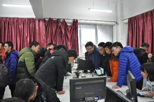 活动当天,三个学院的同学们准时在南区北门集合,伴着阵阵秋风,活动顺利开始进行。首先,负责人对活动进行了简单的学院介绍,然后,将同学们随机分成六组后,在五月花广场开始了本次活动的第一个游戏——人多足少。这个游戏考验了同学们的体力、耐力以及组织配合的能力。在欢声笑语中,同学们消除了彼此的陌生感。接下来,一行人来到李四光实验楼,开始参观447实验室。组织培训部副部向参加联谊活动的同学们讲解了有关机器人的简单知识,并向大家展示了一些优秀的电子设计大赛作品。同学们认真听讲,掌声不断,并且提出了很多有趣的问题,大家对机器人技术产生了浓厚的兴趣。离开447实验室后,同学们一起来到鼎新楼,参观 onlytik