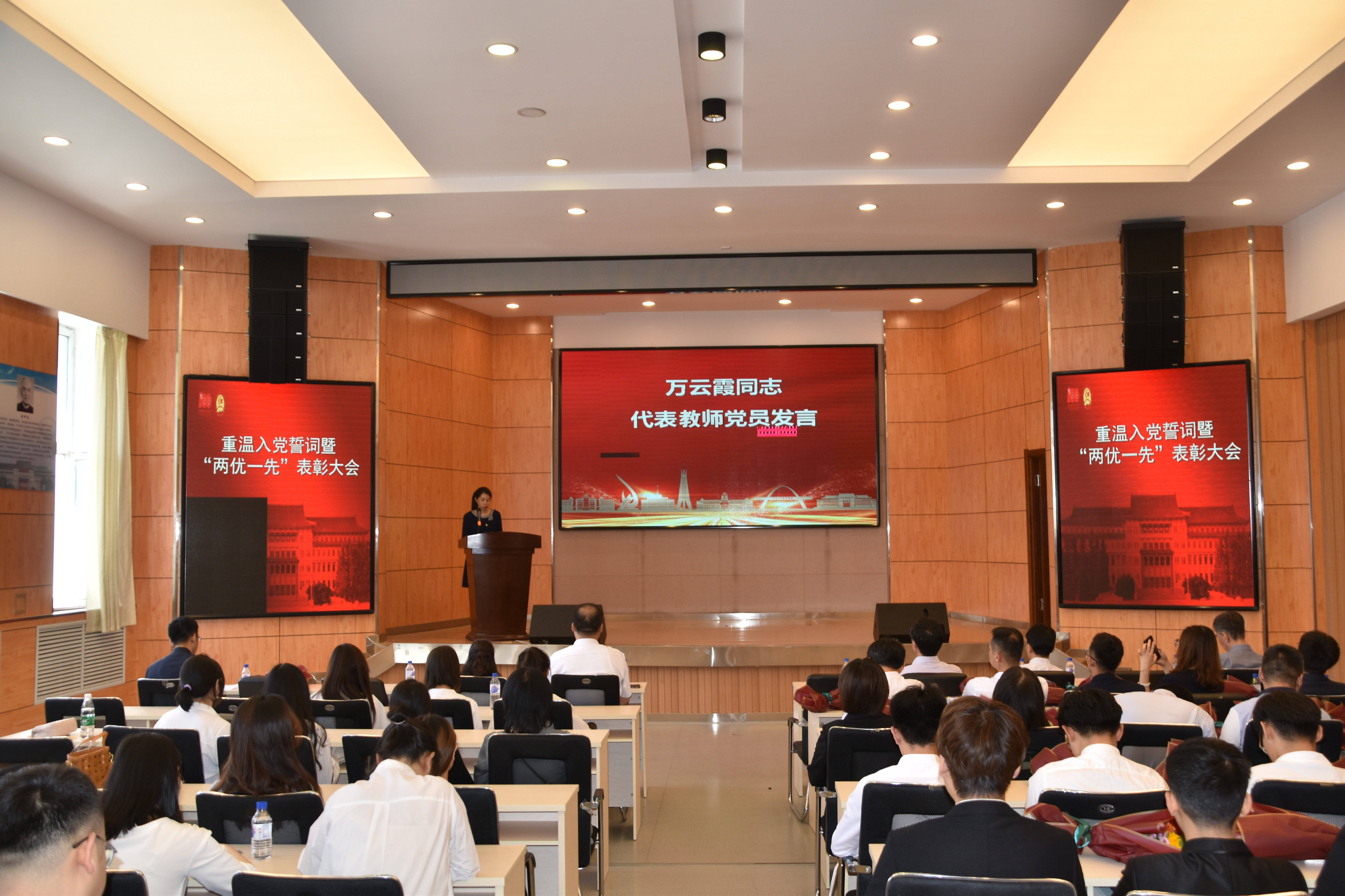 党委于2021年6月22日在朝阳校区图书馆报告厅举行重温入党誓词暨2021年“两优一先”表彰大会,学院全体党员参加大会,会议由 onlytik