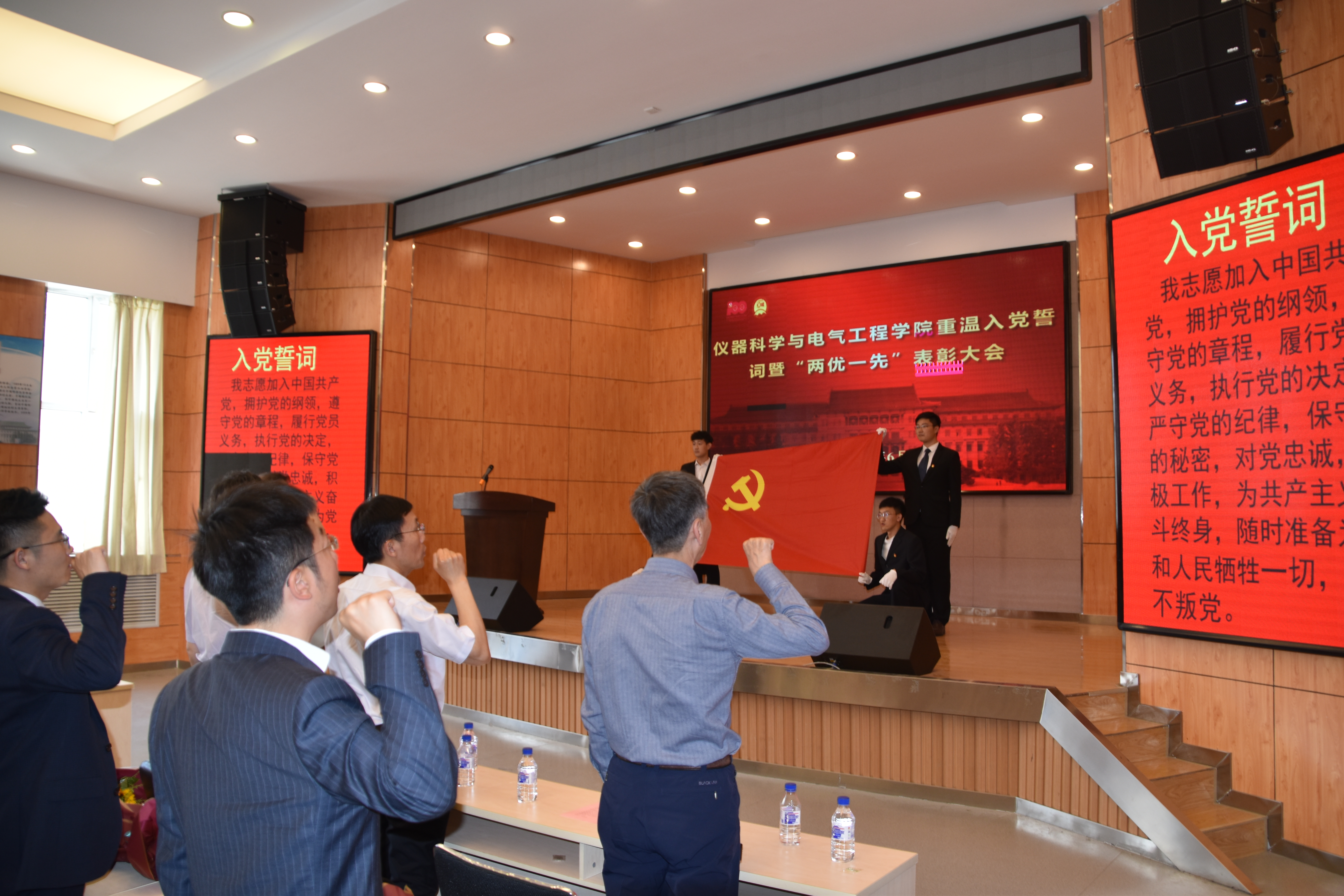 党委于2021年6月22日在朝阳校区图书馆报告厅举行重温入党誓词暨2021年“两优一先”表彰大会,学院全体党员参加大会,会议由 onlytik