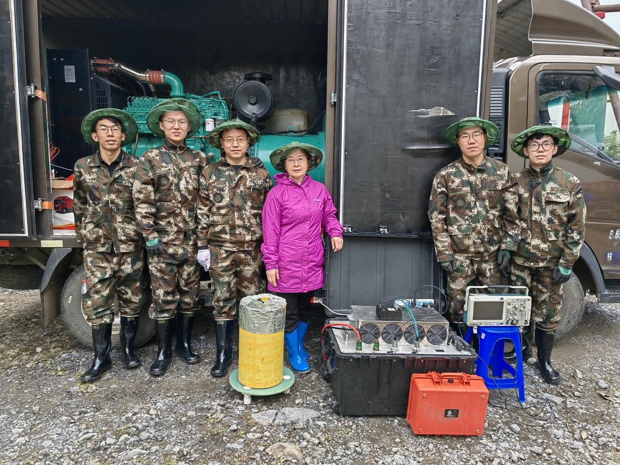 嵇艳鞠教授、黎东升高级工程师、高全明博士后及博士研究生赴埋层深、开采难度极大的翠宏山铅锌矿,采用自主研制200kW大功率电性源发射系统和基于超导量子干涉器(SQUID)的接收系统进行试验勘探,针对野外复杂电磁环境干扰,测试评估不同电磁屏蔽策略的电磁屏蔽效能,在地表水文复杂环境下实现有效探测。应翠宏山矿业有限公司邀请,嵇艳鞠教授向企业主要负责人作学术交流报告。工作地点和住宿周边为亚洲黑熊活动区域,为了安全、顺利高质量的完成实验任务,团队成员每天跋山涉水,行程中风餐露宿,克服冰雹天气、崎岖地形等不利因素,经过艰苦奋战,探测结果为野外数据提取电导率、极化率等多参数提供了宝贵的物探资料。