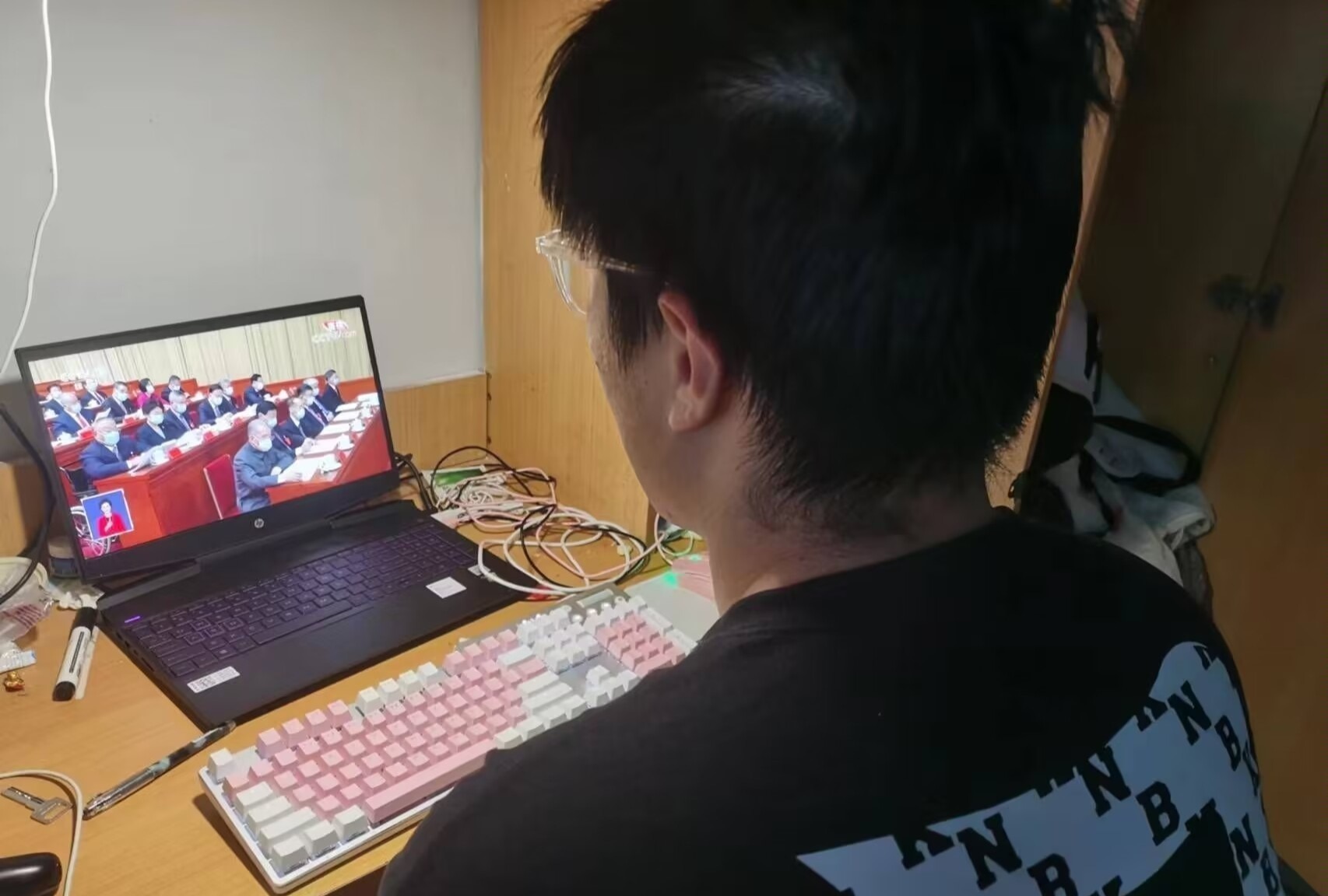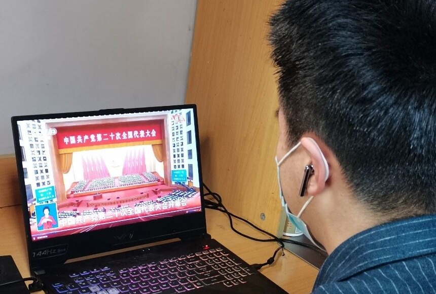 本科生准时收看党的二十大开幕会直播盛况,聆听习近平总书记代表第十九届中央委员会向党的二十大作报告。