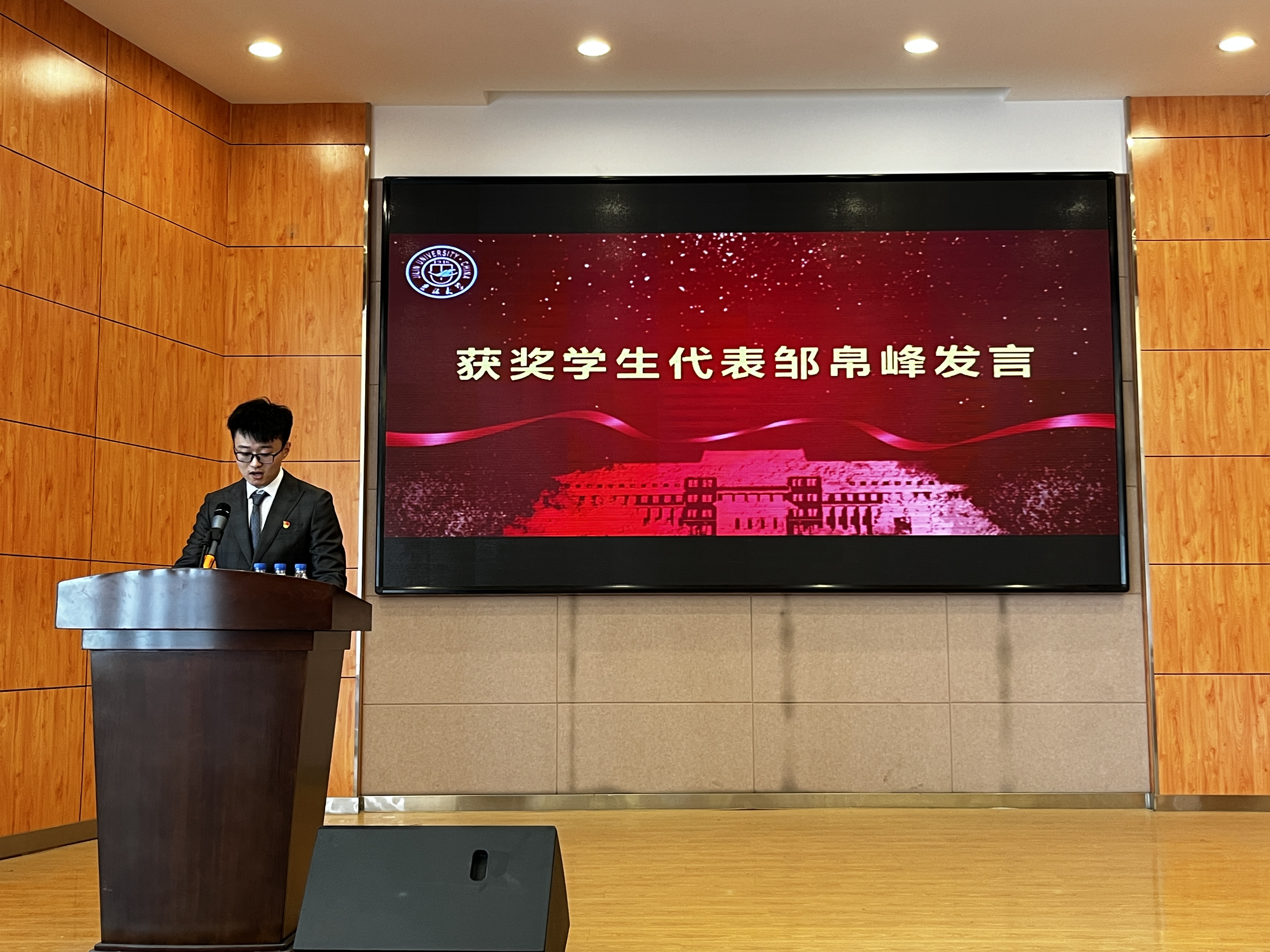 2023年度“地学仪器奖学金”获奖学生的决定》,本年度共有9名同学获得该项荣誉。林君院士为2023年度获奖学生代表颁发荣誉证书。获奖学生代表邹帛峰发言。