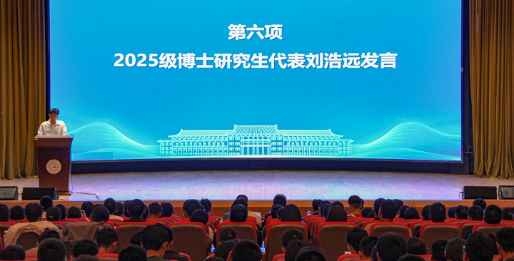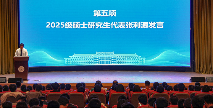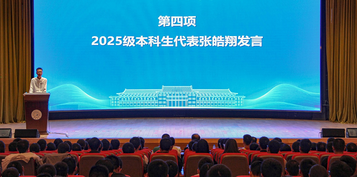 张皓翔、张利源、刘浩远分别代表2025级本科生、硕士研究生、博士研究生发言,他们代表全体新生承诺,将以坚定的信念和饱满的斗志迎接大学学习生活,努力学以成人、研以成才。