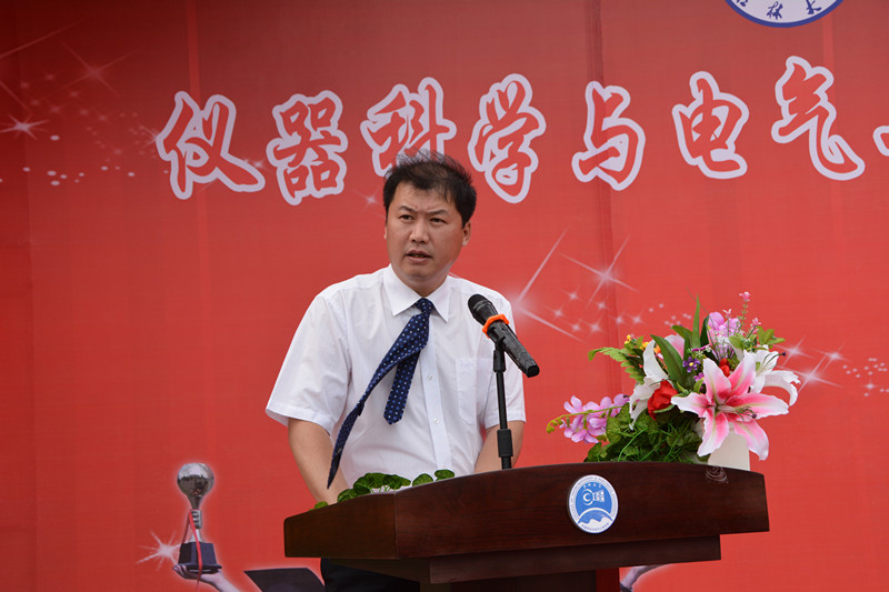 2014年度自强自立大学生标兵韩哲鑫同学分别作了发言。王应吉教授代表学院全体教师对2015届毕业生送上了最诚挚的祝福,希望大家在今后的事业中取得更大的成就。韩哲鑫同学代表学院全体毕业生向辛勤培养自己的母校,向仪电学院,向四年以来关心、帮助大家的领导和老师们表示了衷心的感谢和良好的祝愿。