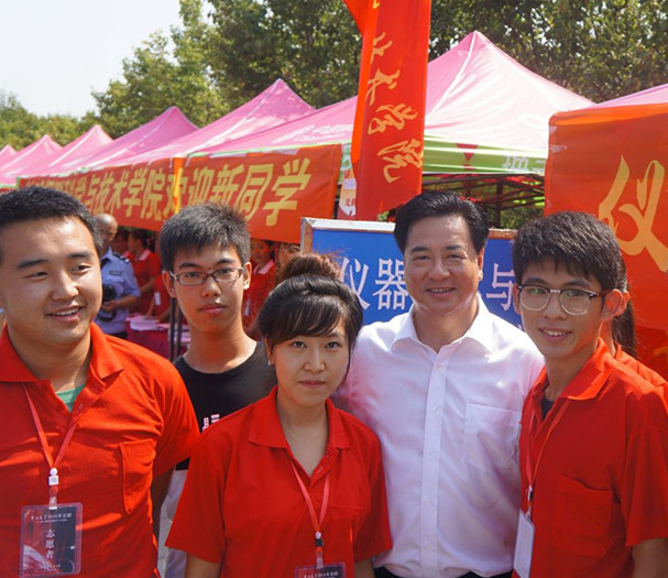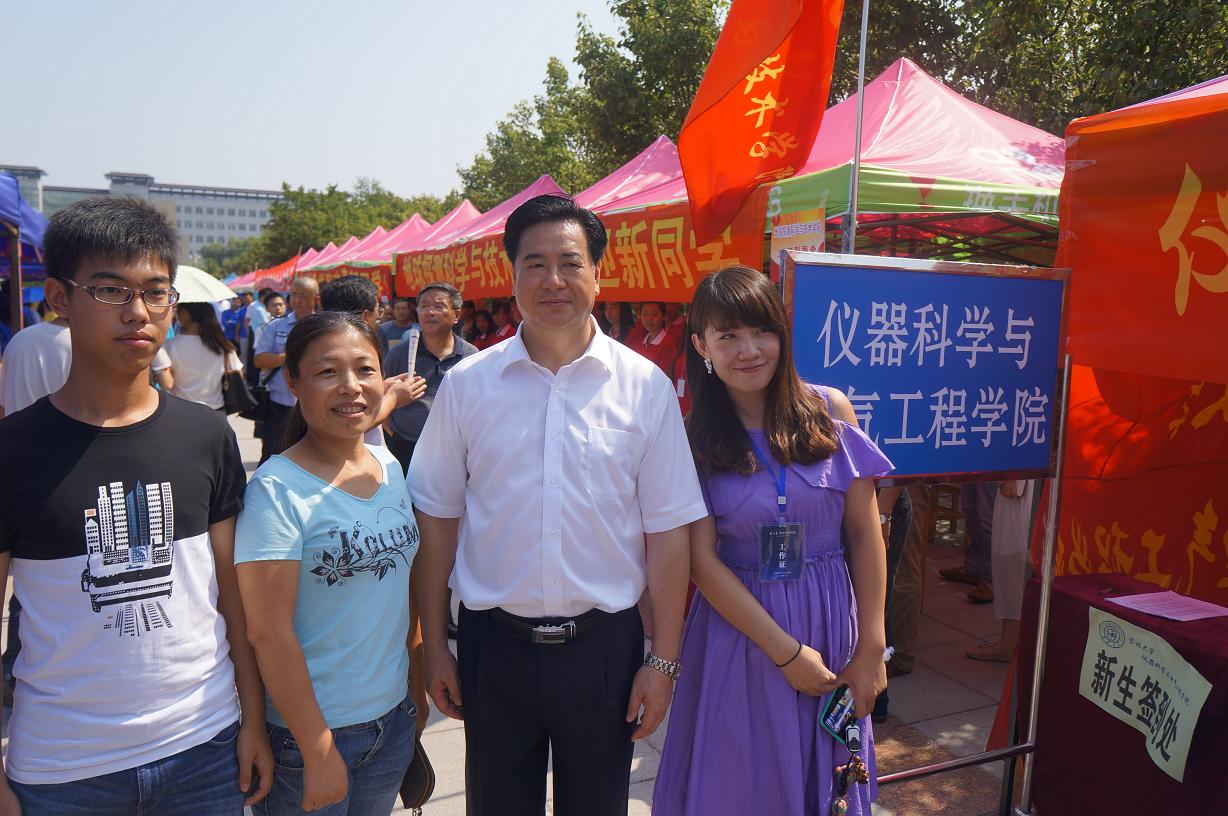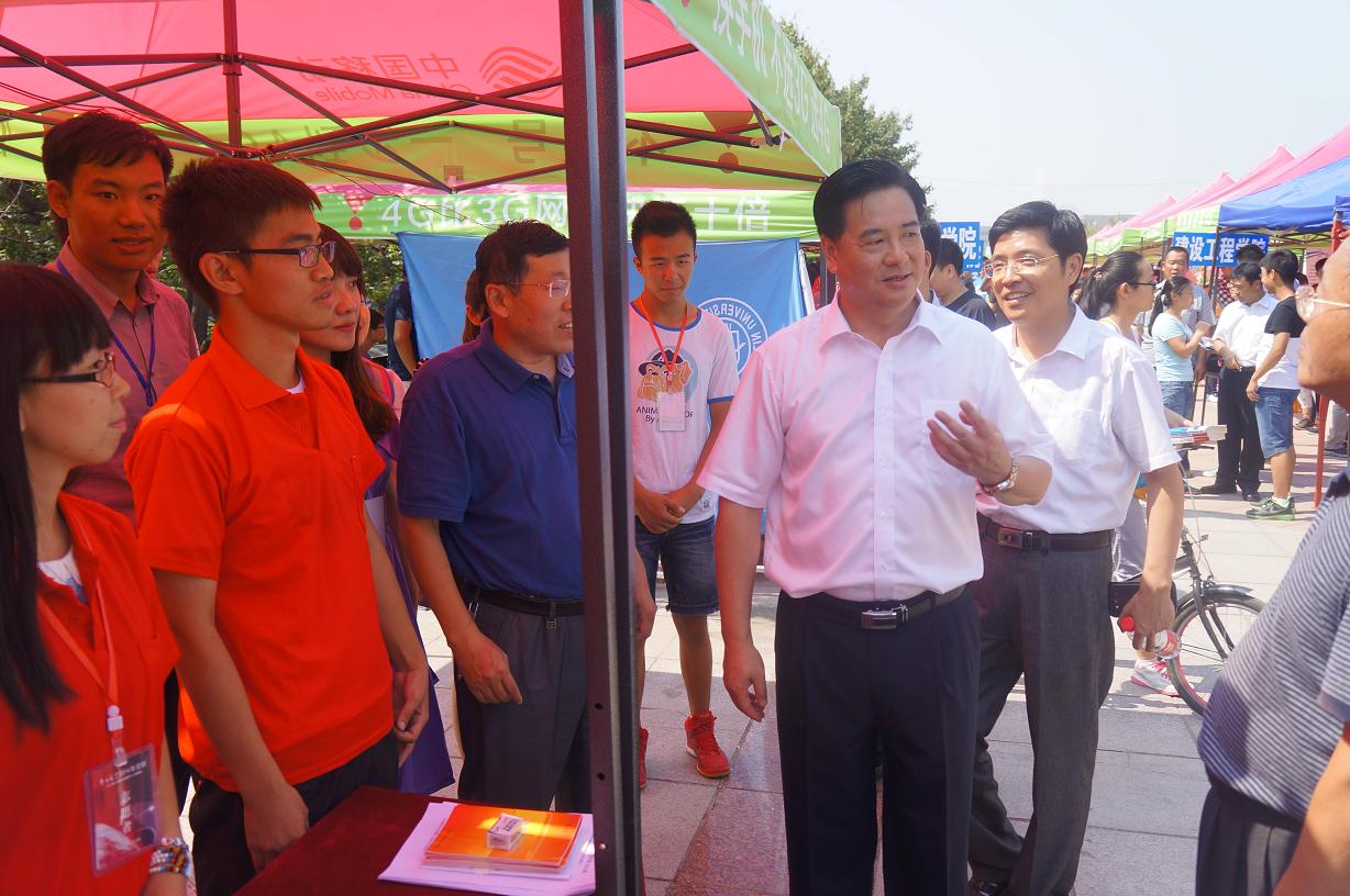 2014年8月30日上午,校长李元元院士、校党委副书记兼副校长韩晓峰教授、副校长张向东教授在学校相关职能部门负责领导陪同下来到中心校区五月花广场视察2014年迎新工作情况。