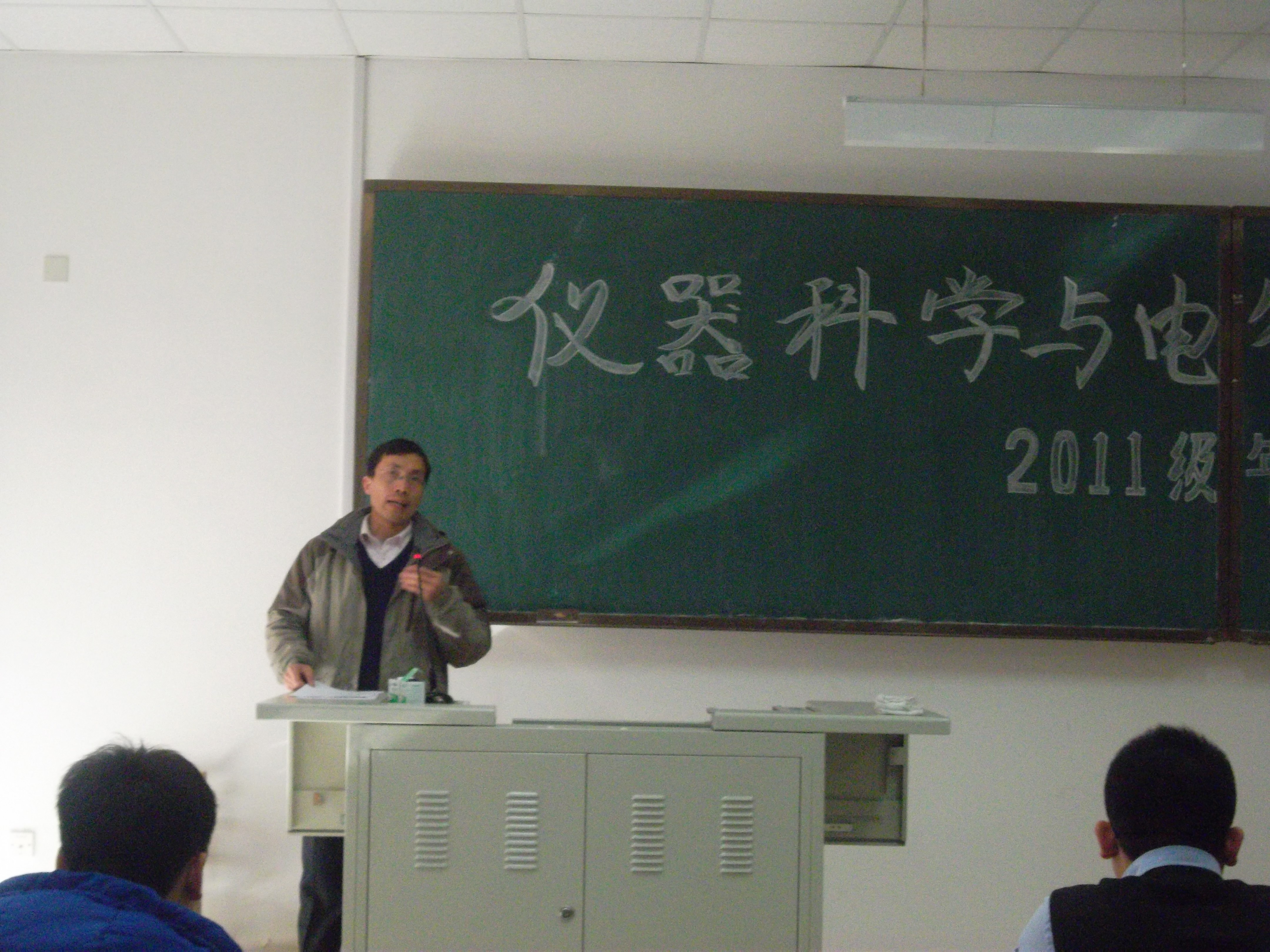 学生历年的获奖情况,他鼓励大家要积极地将专业知识与动手实践有机结合,他动员2011级全体同学积极参加到即将举行的校电子设计竞赛中,鼓励大家认真选题,大胆创新,力争在今年的校电子设计竞赛中再创佳绩。会后,各位领导和老师还耐心地与2011级同学进行了交流与沟通,针对同学们提出的问题给出了切实宝贵的意见。
