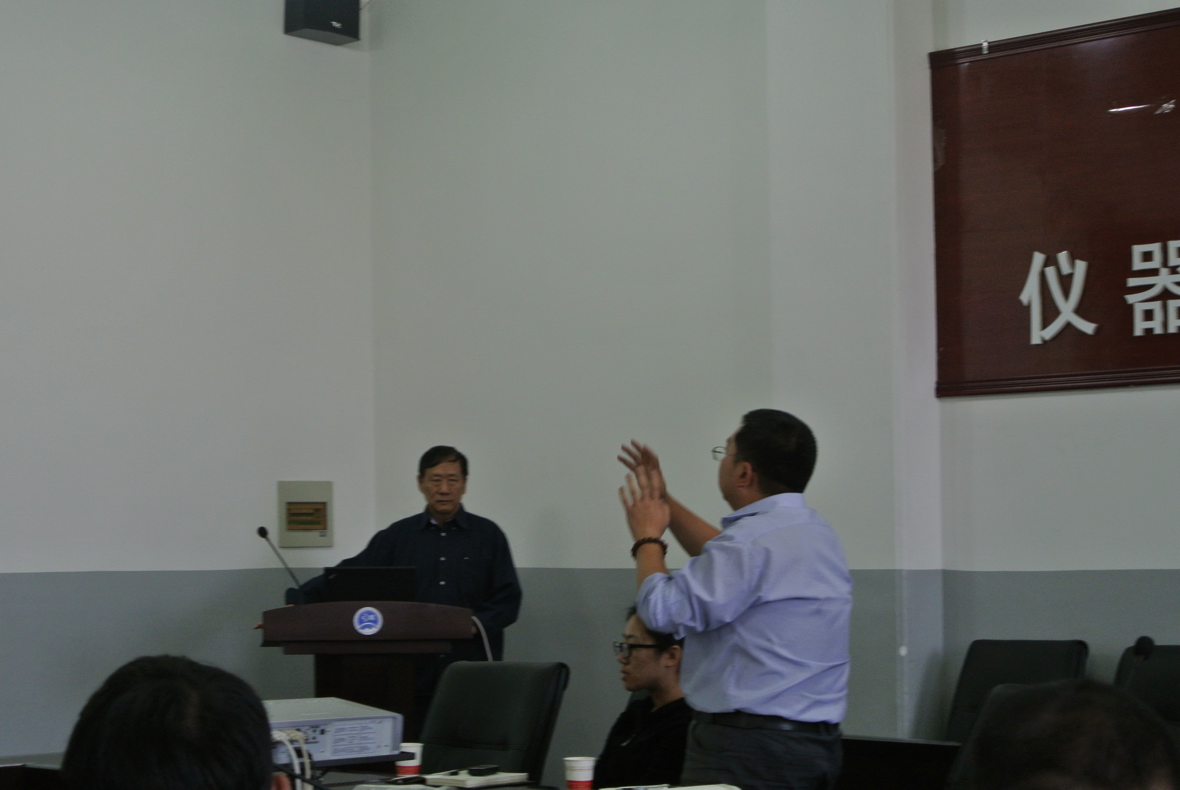 报告会结束后,孔凡年教授就如何增加井地电磁探测深度、如何解决井地电磁屏蔽等相关问题与仪电学院、地探学院的师生进行了深入交流。