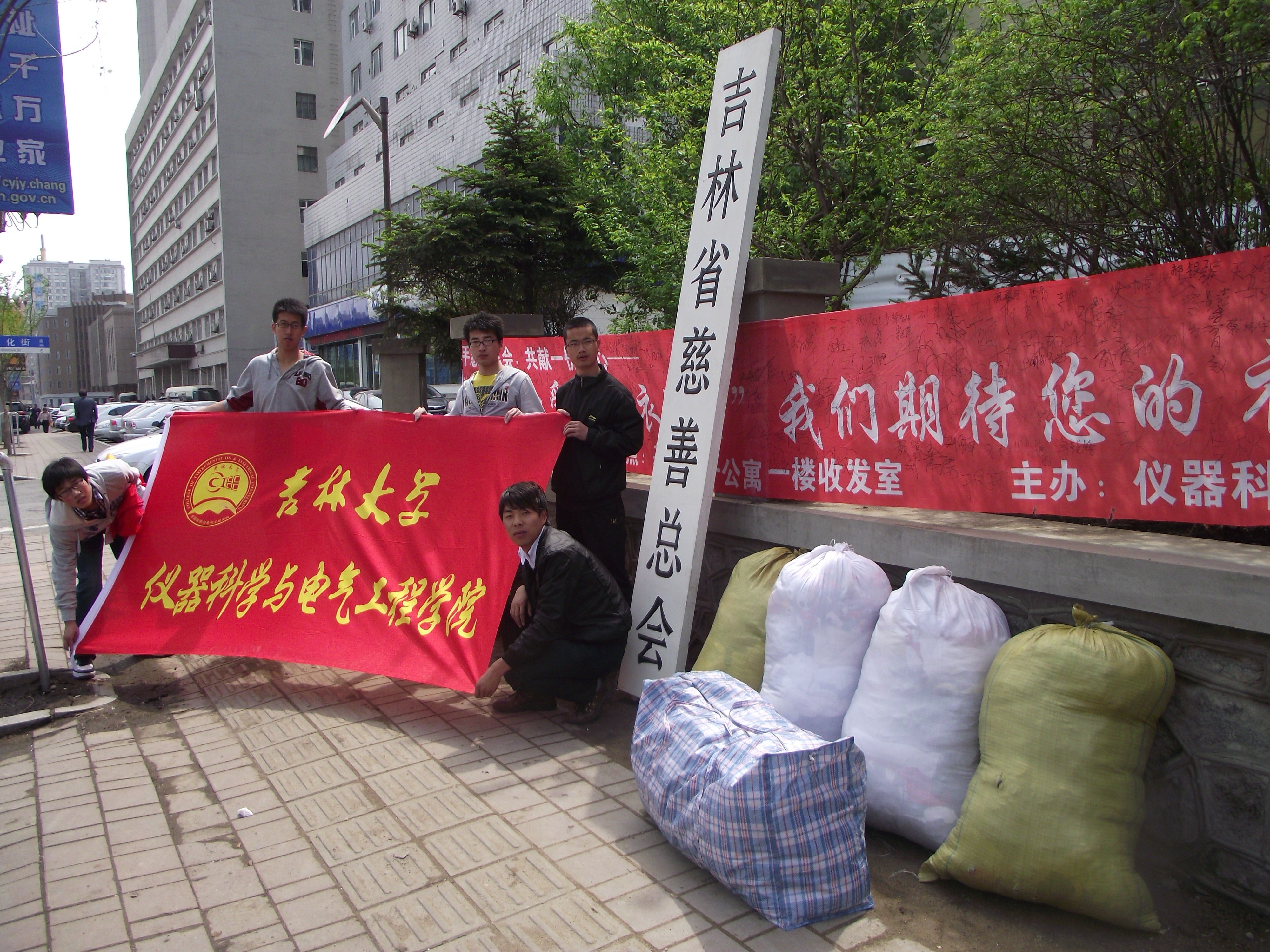 仪器科学与电气工程学院团委、“牵手”青年志愿者协会携手吉林省慈善总会于2012年5月4日至5月11日在中心校区开展了“细微的爱,从衣做起”——爱心衣物捐赠活动。经过一周的爱心捐赠,活动最终募捐得衣物10大包,共计600余件。2012年5月14日上午,此次爱心捐赠活动的组织者们将爱心衣物全部送往吉林省慈善总会,受到慈善总会工作人员的热情接待和高度赞赏。