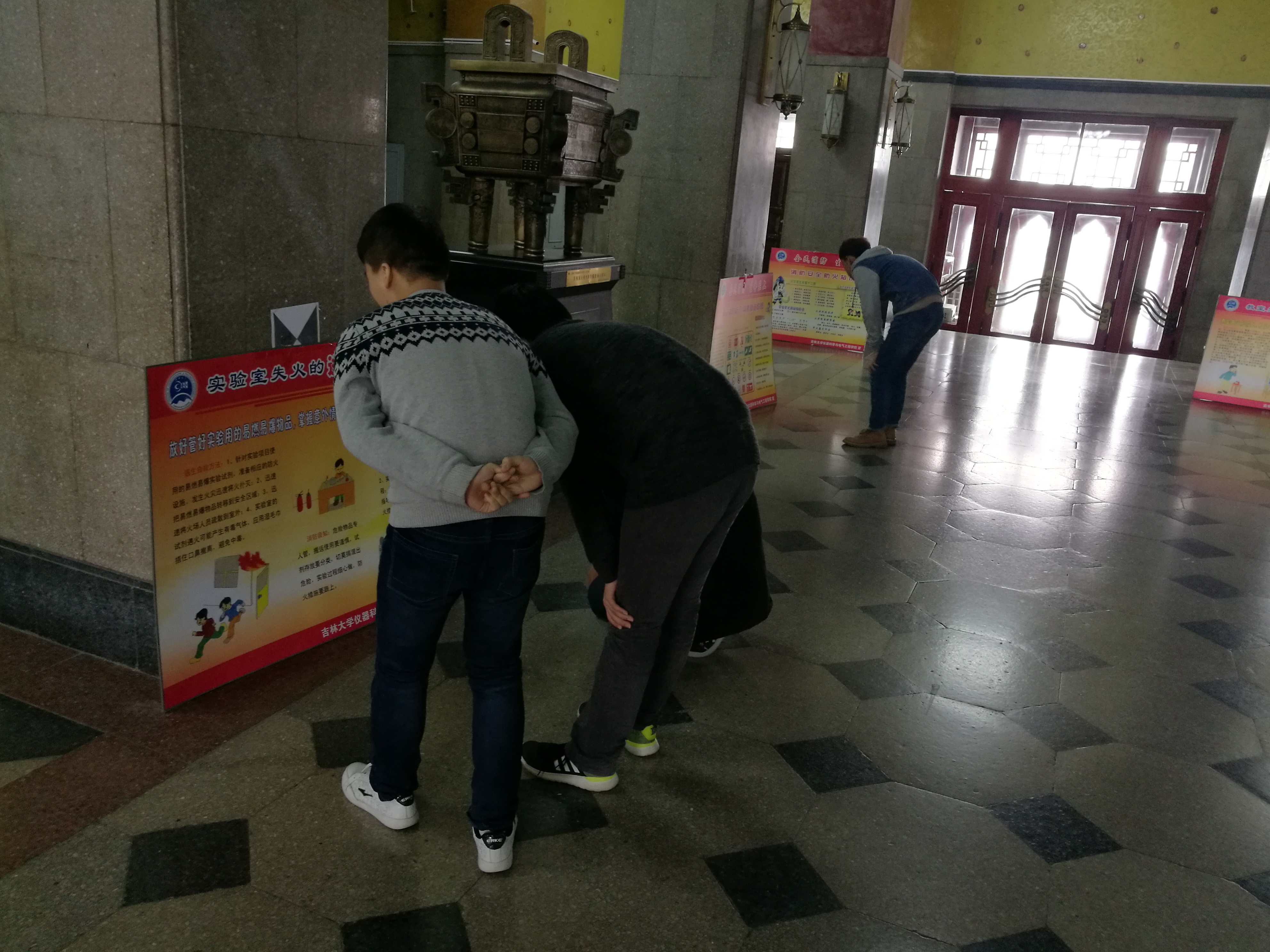 2017年11月9日,数张消防文化宣传展板整齐排列在朝阳校区地质宫二楼,这是 onlytik