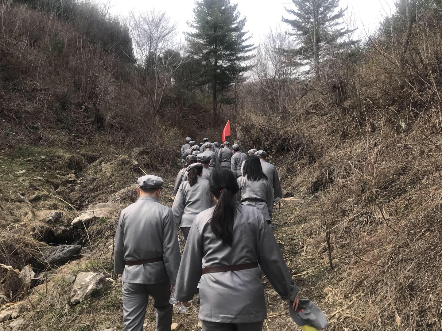 4月21日下午,培训班进行了体验教学“重走抗联路”。在临江市花山镇松岭,学员们打着军旗,沿着山谷互相鼓励,互相帮助坚持长途跋涉数小时,充分体验了抗联战士当年的艰苦历程和不屈不挠的民族气概,深刻体会到抗联战士的坚强不屈、英勇斗争精神。