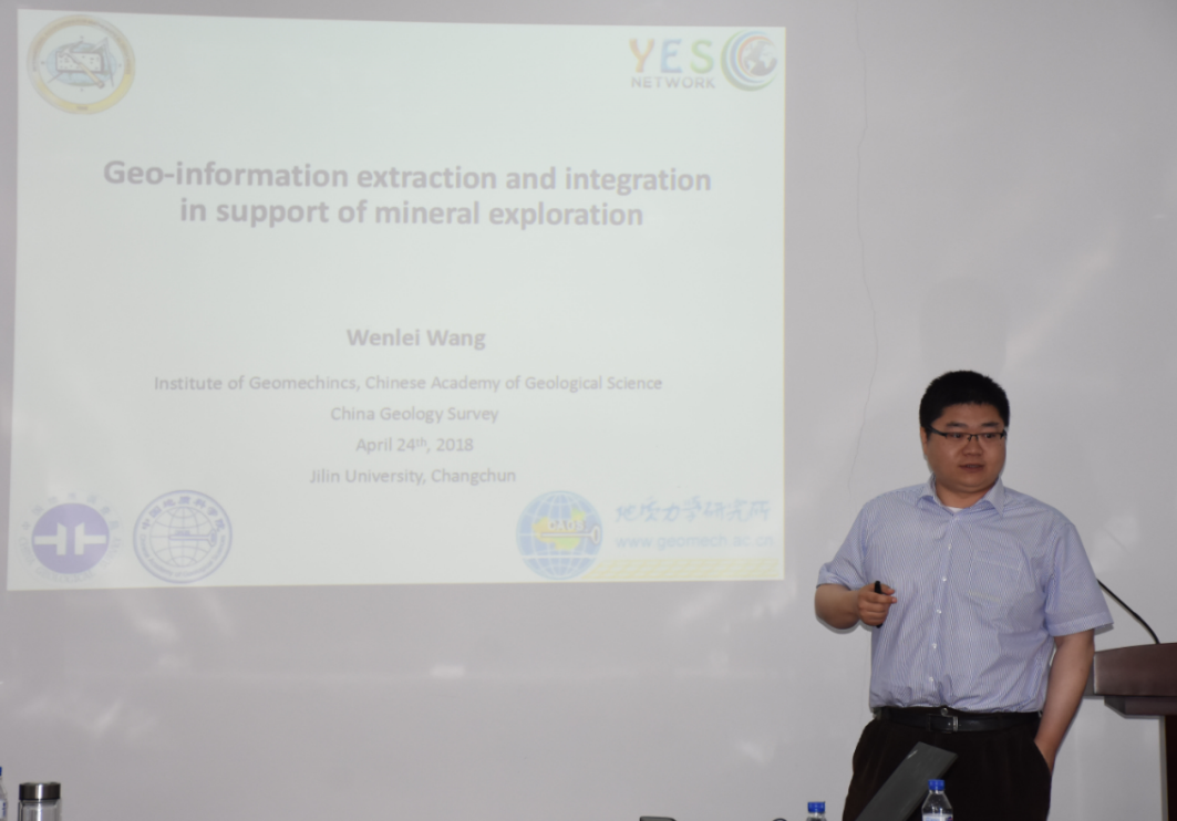 上午的研讨会共安排了涉及遥感、地热、地球化学、大数据、信息提取、地质编图等方面的7个学术报告:“Remote predictive mapping using remotely sense, geophysical, geologic and geochemical data for geological mapping”(Jeoff Harris)、“Mineral potential modelling : Examples from Canada”(Jeoff Harris)、“Geo-information extraction and integration in support of mineral exploration”(王文磊)、“The geologic applications of hyperspectral remote sensing in vegetation covered areas”(陈圣波)、“A New Perspective about Moon Surface Revealed by CE-2 CELMS Data”(孟治国)、“Remote sensing and geothermal investigation”(贺金鑫)、“Introduction to big data, cloud computing and machine learning in China Geological Survey”(王永志)。
