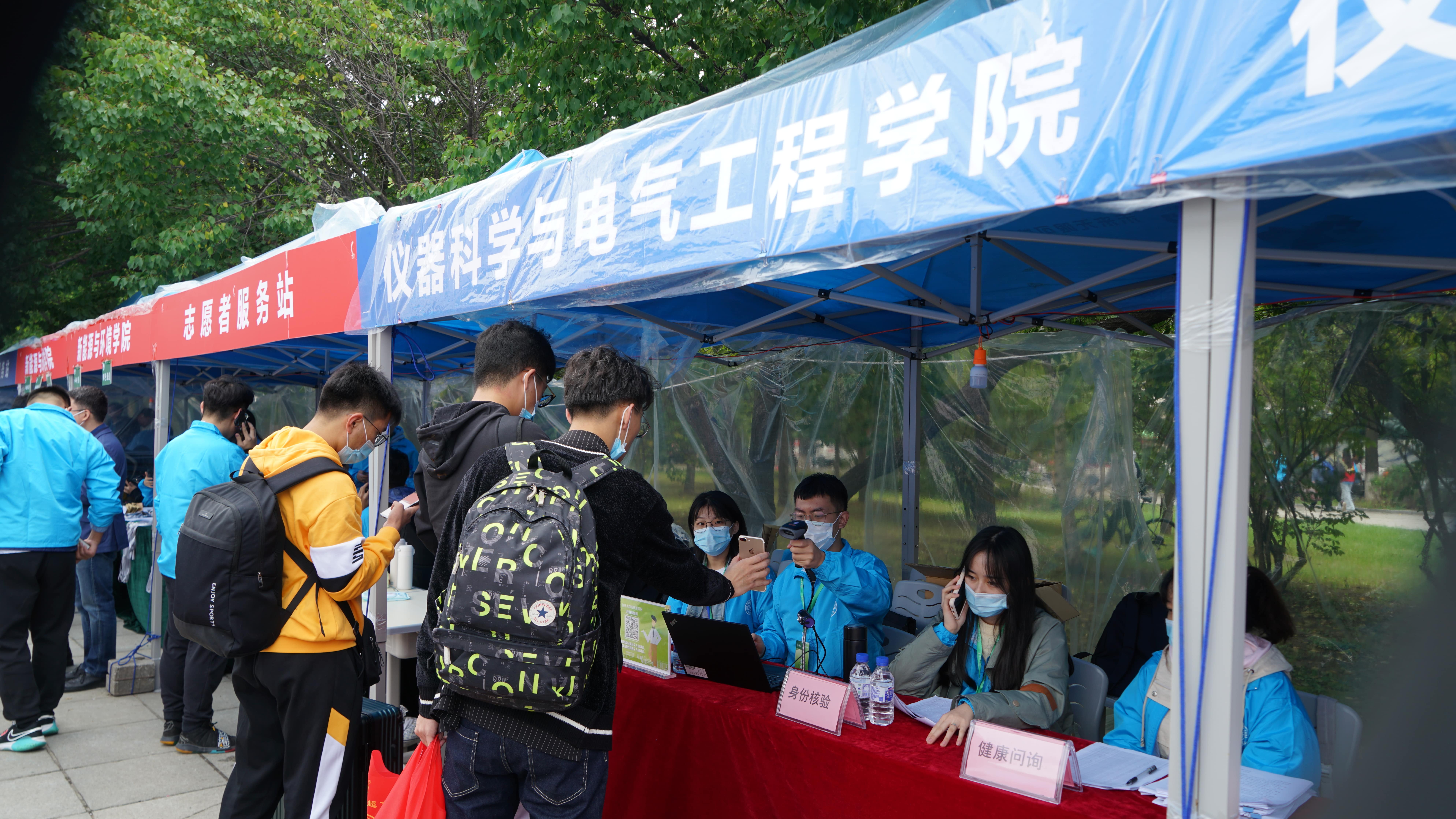迎新志愿者统一佩戴志愿者工作证,穿志愿者制服。另外,为配合学校防疫要求,在场所有人员全部要求佩戴口罩,新生排队报到时队伍需间隔一米以上。