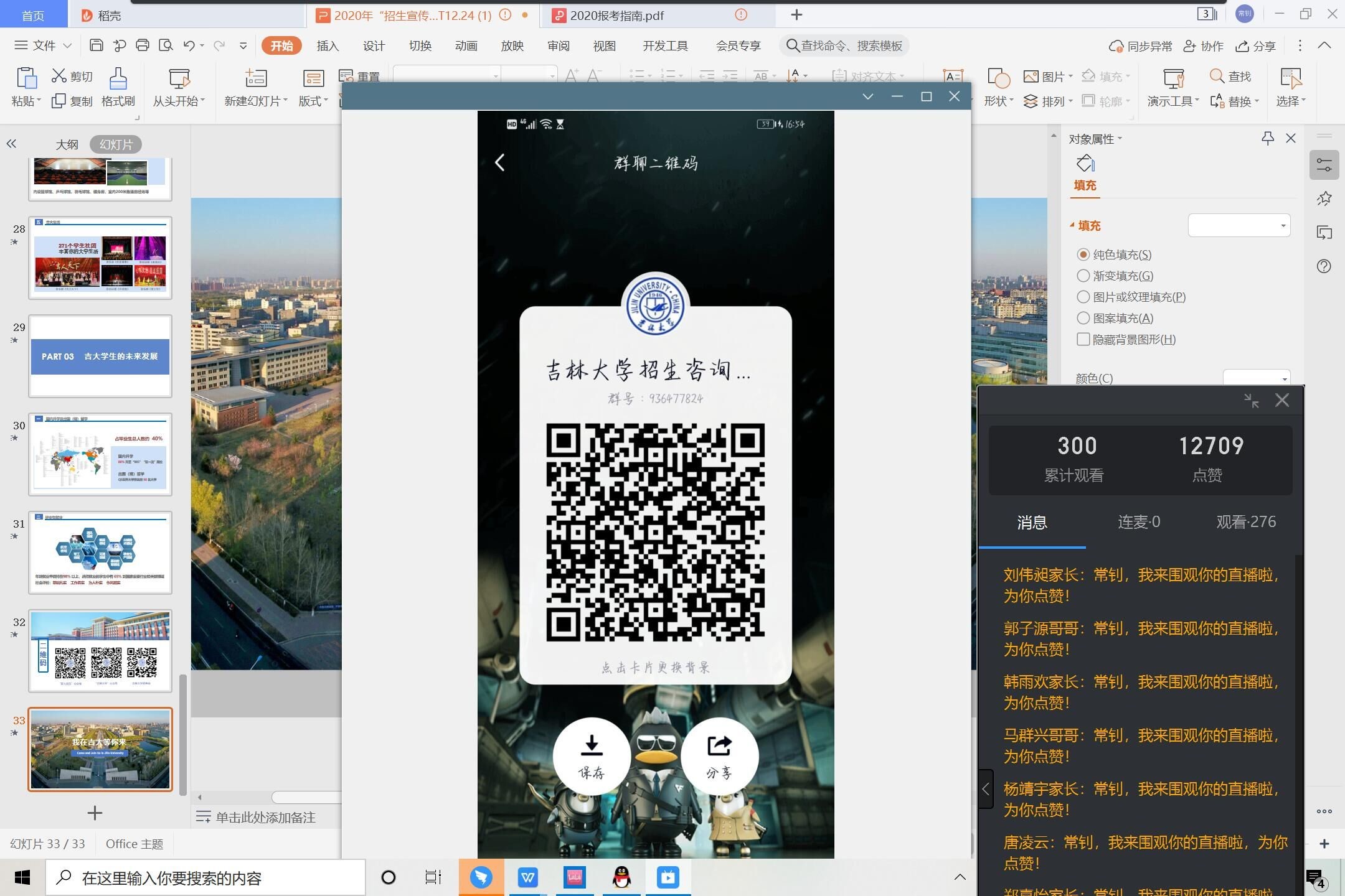 其中宣讲人李飞扬考虑到线上宣讲缺乏互动,不能有效为同学解答疑惑等问题后,与宣讲团队进行讨论,决定采用线上线下宣讲双平台的方式在母校忻州市第一中学进行宣讲。宣讲人李飞扬负责录制线上宣讲视频,录制时宣讲人以学校发布的招生宣讲ppt为主体展开介绍,宣讲内容主要包括吉大概况,杰出校友,学校排名,优势学科,人才培养,国际合作,就业升学及招生情况等方面,其中对杰出校友,学校排名等的讲解让同学们了解了吉大作为一所双一流大学的深厚底蕴,国际交流和人才培养方面的介绍则彰显了吉大的开阔视野和优质平台,表现出其雄厚实力,以便让同学们更好地了解吉大的定位和实力。同时宣讲人结合在学校的经历与感受,介绍了吉大的校园美景,四季风光,以及丰富的学习生活资源,以激发同学们对吉大的向往。最后宣讲人李飞扬分享了一些自己的学习经验,并以“求实创新,励志图强”的吉大校训鼓励学弟学妹们静心沉淀,努力拼搏,百尺竿头,更进一步。