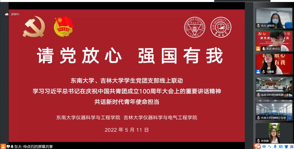 的支持表示感谢,向与会同学们致以亲切的问候。随后在东南大学仲点石老师的带领下,与会成员共同学习习近平总书记在庆祝中国共产主义青年团成立100周年大会上的重要讲话精神,激励同学们增强勇担时代重任的光荣感、责任感、使命感,号召同学们汲取智慧、提振信心,为实现中华民族伟大复兴中国梦贡献力量。深入学习习近平总书记的重要讲话后, onlytik