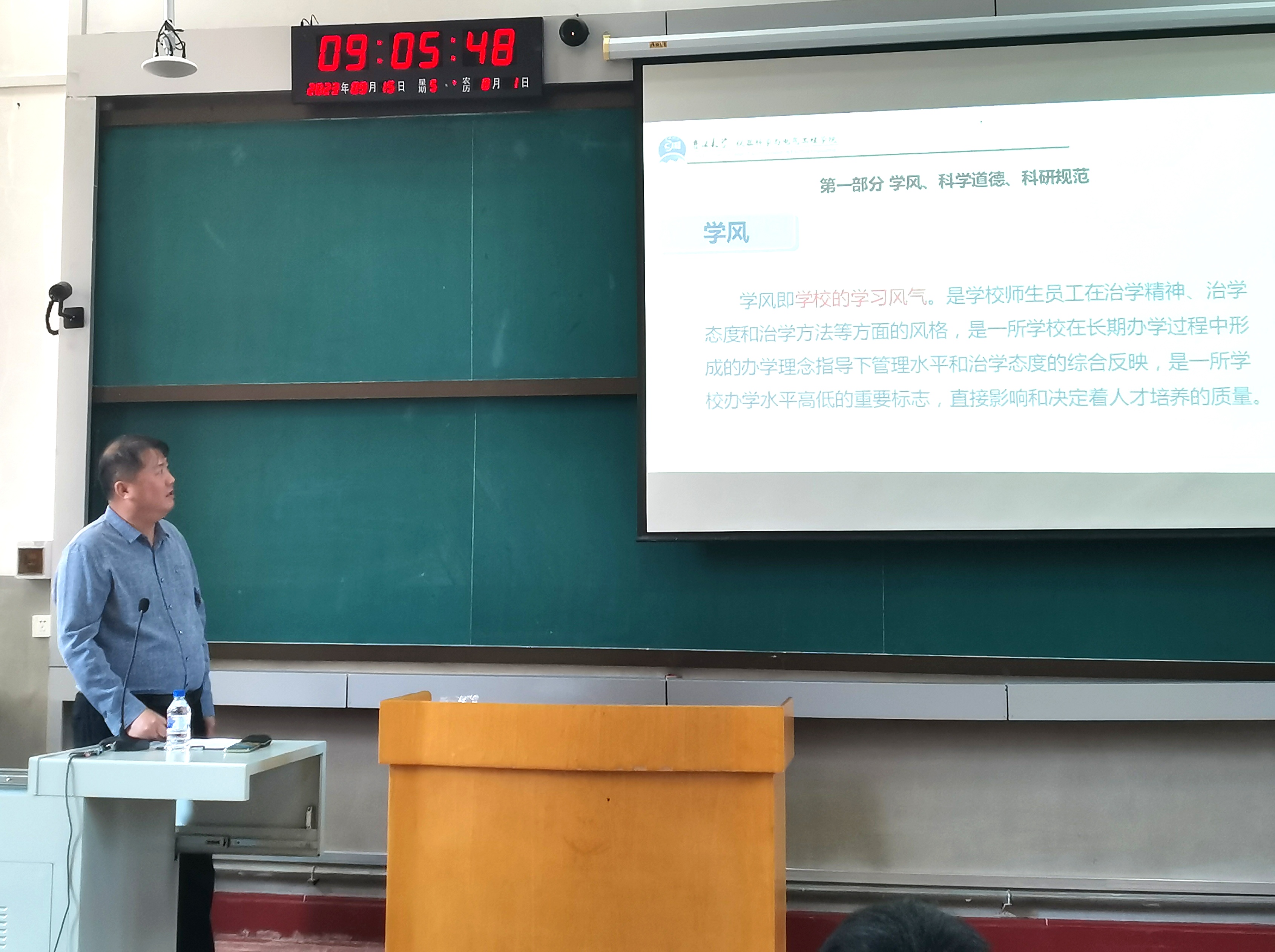 于9月15日上午在地质宫224教室举办了2023级研究生科学道德和学风建设讲座。本次活动由学院党委书记邱增凯老师主讲,研究生辅导员周琪老师主持,全体2023级研究生参加本次活动。