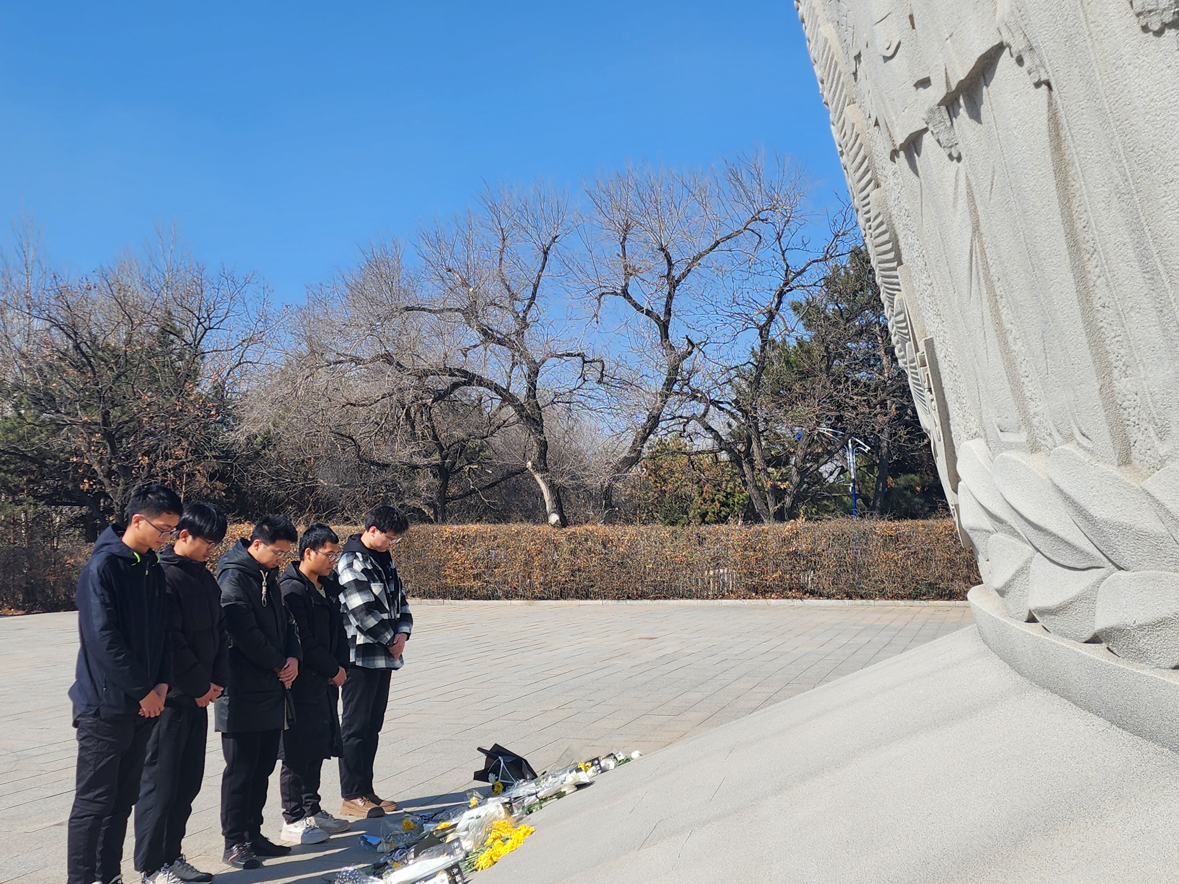 博士生在长春市革命烈士陵园开展“清明祭英魂,缅怀烈士行”主题党日活动。