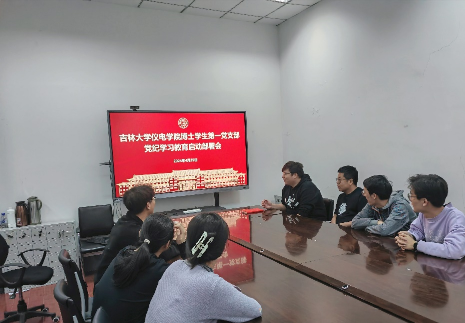 为深入学习贯彻习近平总书记关于党纪学习教育的指示批示精神,深入学习贯彻《中国共产党纪律处分条例》,按照学校、学院党委部署安排,仪电学院博士学生第一党支部于4月25日15:00在朝阳校区地质宫304会议室召开了党纪学习教育启动部署会议,对本支部的党纪学习工作进行启动部署。党支部全体党员参加会议,会议由党支部书记于淇主持。